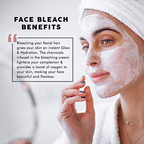 • SUPER BRIGHT SKIN INSTANTLY: The chemicals enriched in this facial Bleach cream lightens your facial hair to a light golden hue in 10-12 minutes giving your face an instant glow. Also this product is dermatologically tested so your gentle skin does not su