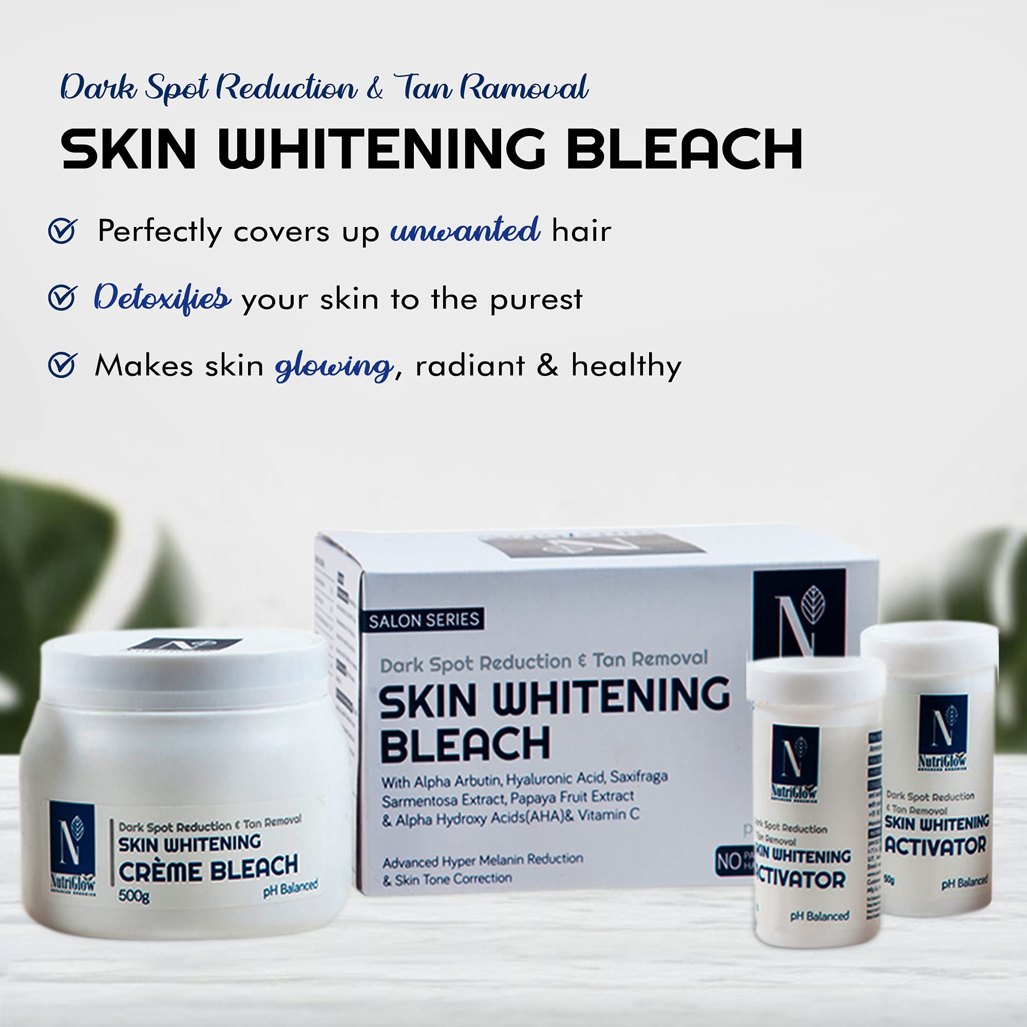 NutriGlow Advanced Organics Cream Bleach Kit with Creme Bleach (500 g) Activator (2 x 50 g) Serum (100 ml) Pack of 4