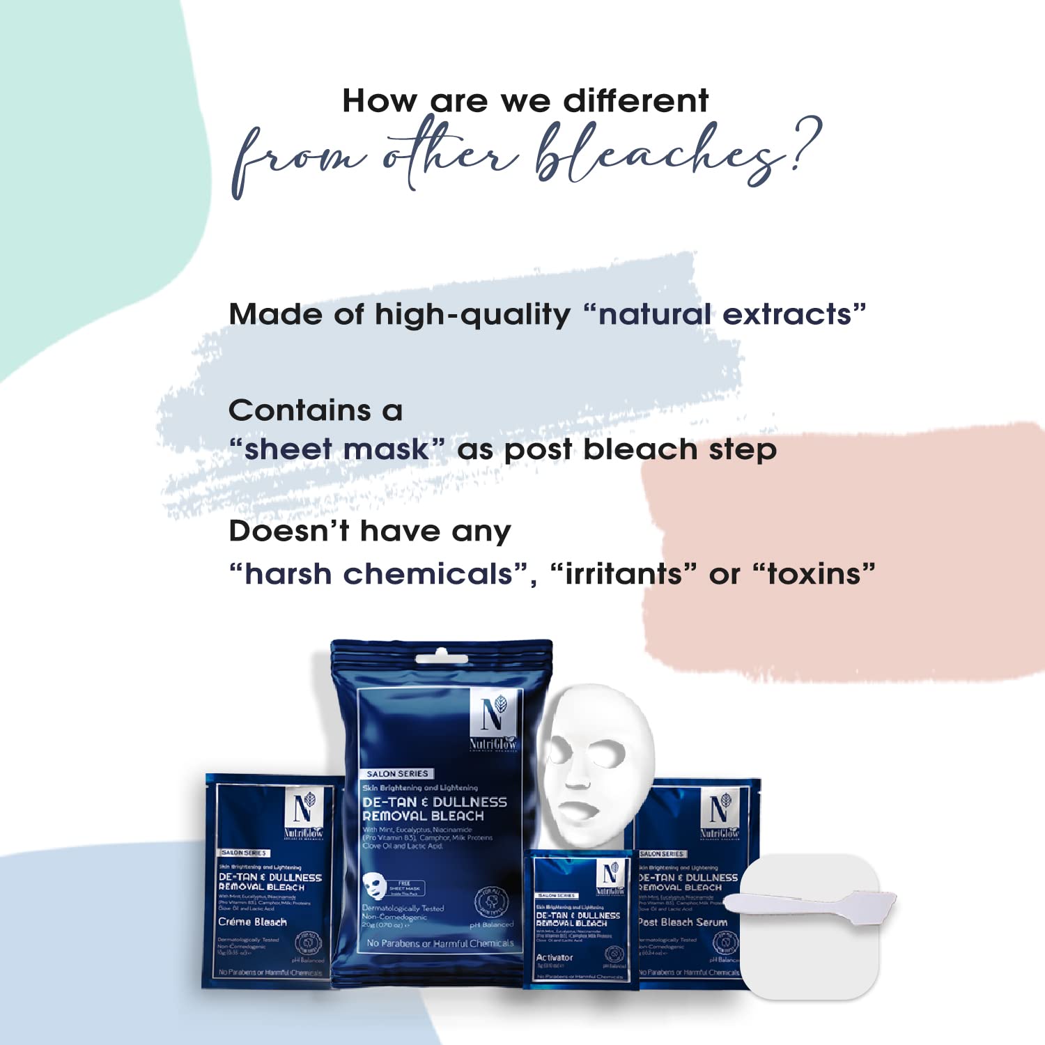 Nutriglow Advanced Organics De-Tan & Dullness Removal Bleach for Skin Brightening and Hair Lightening (6 in 1) - 20g All Skin type