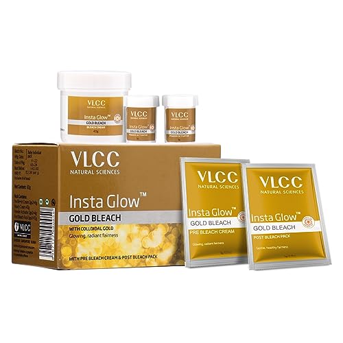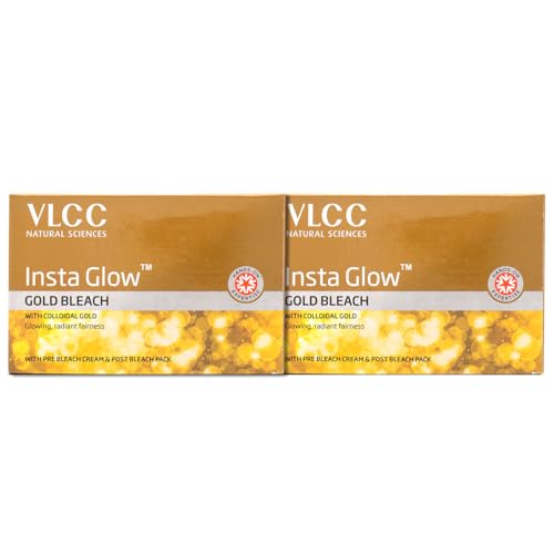 • VLCC Insta Glow Gold Bleach contains 4 products i.e. Pre Bleach Cream Activator Powder Bleach Cream and Post Bleach Pack.