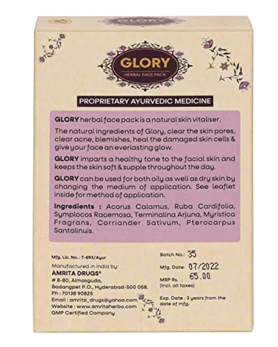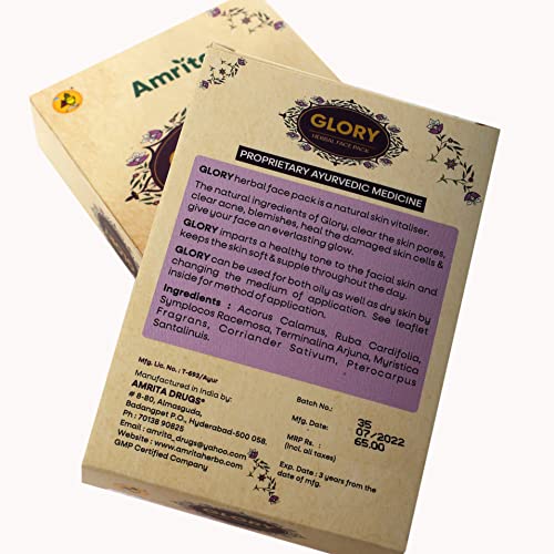 Amrita Glory Face Pack is safe and natural remedy to take care of unwanted pimples and acne in all skin types. It helps reduce excess oil and sweat from the face. It is very effective in reducing burning sensation and discolouration.