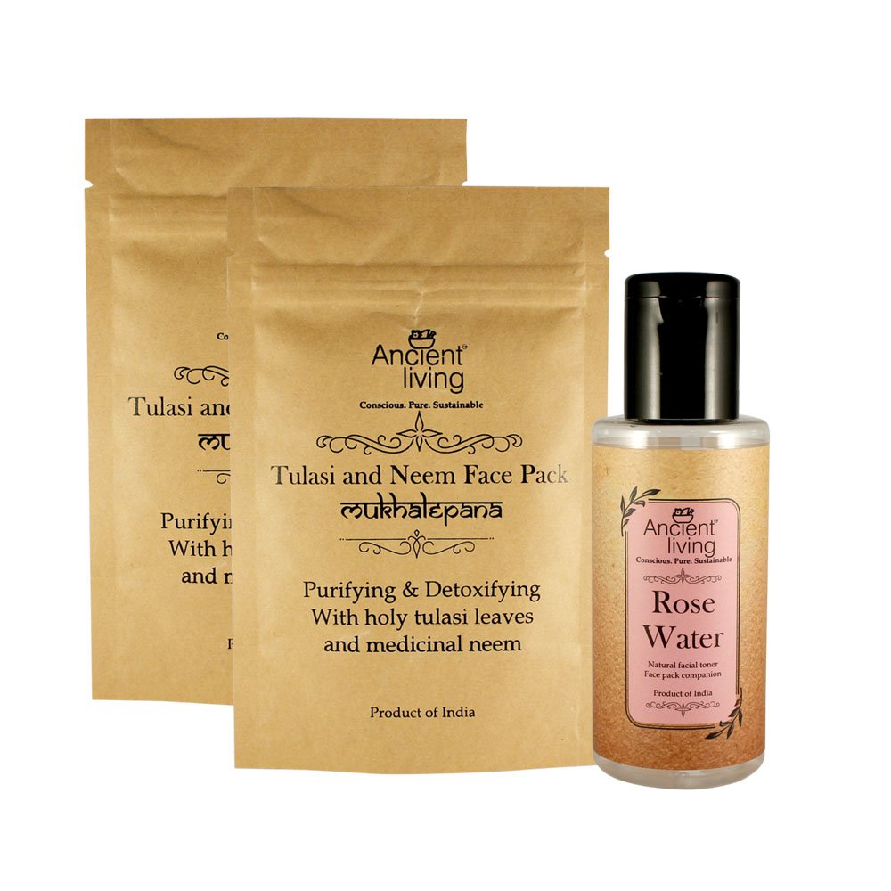 Ancient Living Organic Blemish free & Clear Skin Pack | Tulsi and Neem Face Pack Rose water | Fairness and Natural Glowing | Tan Removal | Skin Brightening | Acne | Pimple Care | 80gms