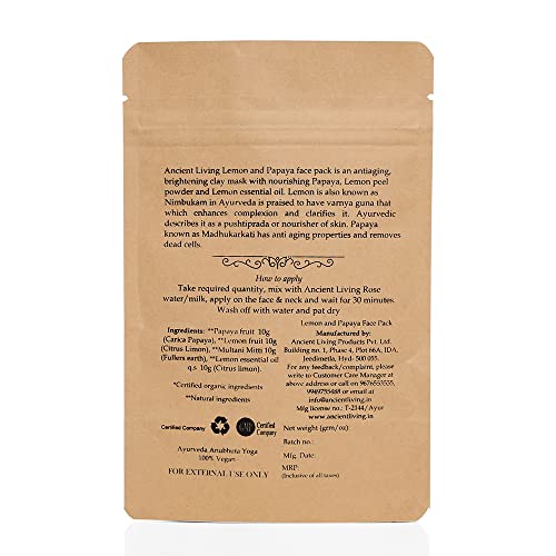 HomeBeautyFace CareMasksFace PacksAncient Living Organic Lemon Peel & Papaya Face Pack With Skin Nourishing Cleansing & Anti - Aging Properties - 40 gm - Set Of 2