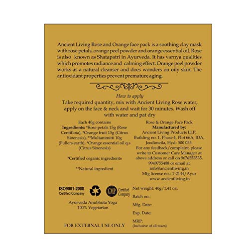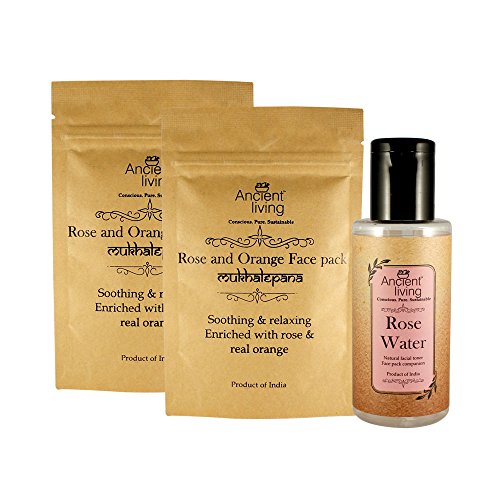 Rose & Orange face pack: Ancient Living Rose and Orange face pack is a soothing clay mask with rose petals Orange peel powder and orange oil. Rose is also known as Shatapatri in Ayurveda. It has varnya qualities which promote radiance or brightness. It has anti-inflammatory properties known as shothahara. Rose has a calming effect and promotes peace and relaxation. Rose also has a cooling effect on the skin. Orange relieves tiredness and imparts freshness. This natural clay-based product with natural Orange essential oil is for anyone who wants to have a clearer and fresh complexion with soothing natural rose. Organic Rose Water- (Antiseptic anti-depressant aphrodisiac)Precious Healing qualities of rose water are best harnessed by Ancient Living Organic Rosewater. Its exquisite fragrance is tender uplifting and soothing. A boon for both men and women. Ancient Living organic rose water is collected as a residue during the essential oil extraction of fresh roses. It is a natural hydrating facial toner with the cooling soothing & moisturizing properties of rose. Use it along with Ancient Living Face pack powder for a rejuvenating experience or splash on the face as required anytime for instant skin pickup in all seasons. Can be used any number of times. It is gentle enough to be used on children.
