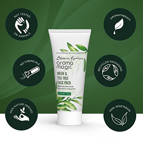 HomeBeautyFace CareMasksFace PacksAroma Magic Neem & Tea Tree Face Pack- 5% Niacinamide, Lemon Extracts & Essential Oils of Lavender | Prevents Acne/Pimple, Black heads, Tightens Pores | For Oily/Acne Prone Skin, 50g (Pack of 1)
