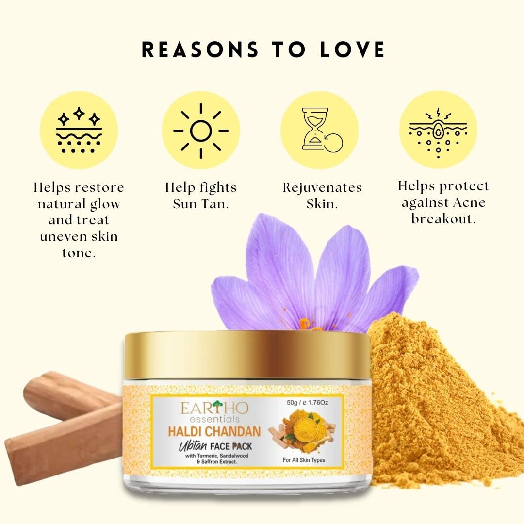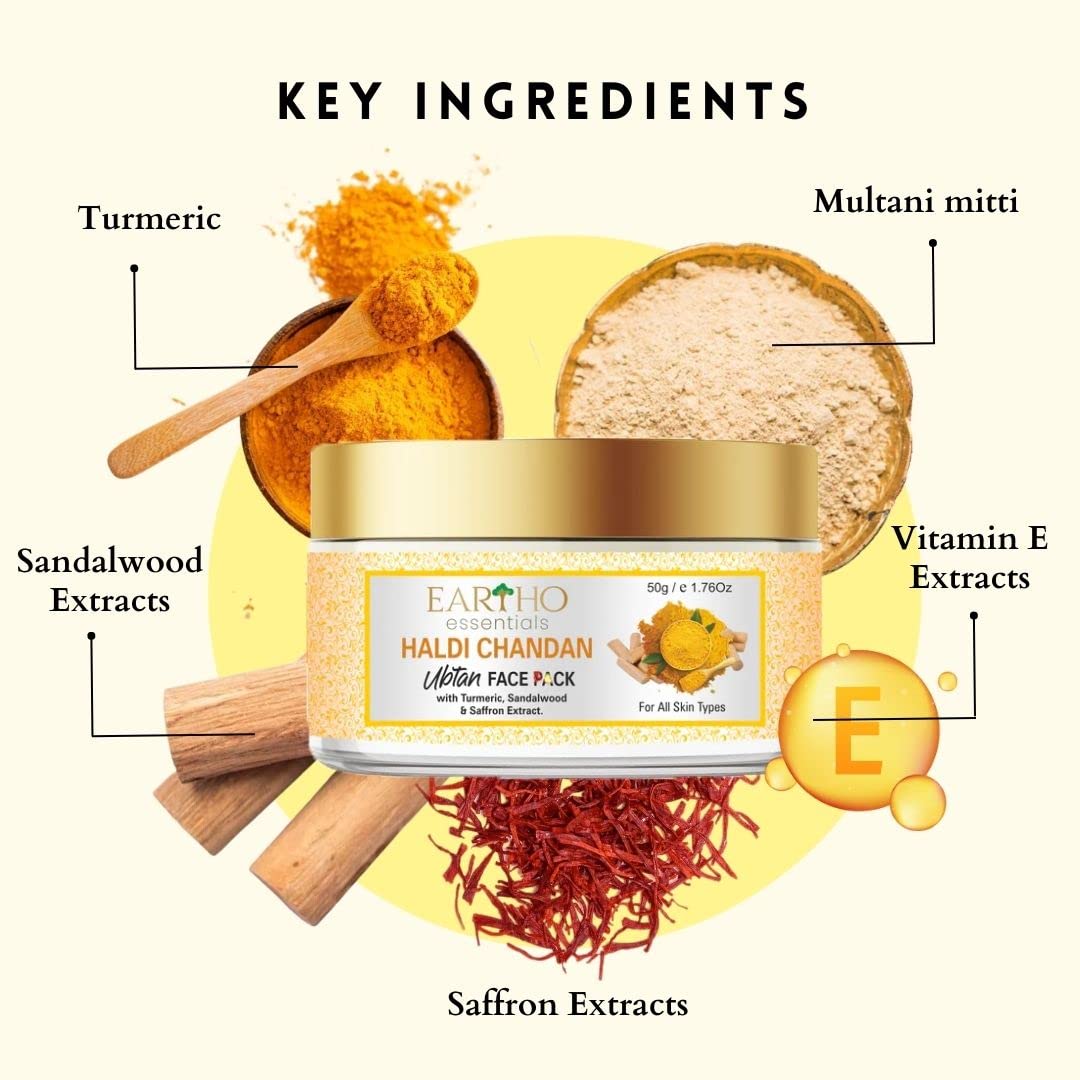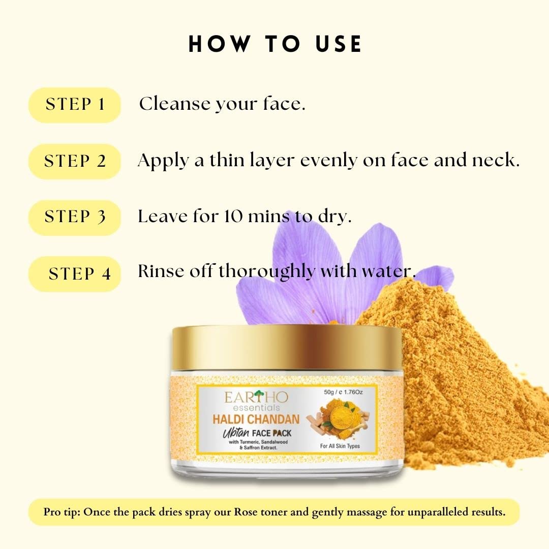 Introducing our Haldi Chandan and Multani Mitti Ayurvedic Face Pack – an exquisite blend of traditional ingredients carefully crafted to rejuvenate and nourish your skin. Immerse yourself in the time-honored beauty rituals of Ayurveda with this unique face pack designed to provide a spa-like experience in the comfort of your home. Key Features: Ayurvedic Elixir: Experience the potent synergy of Haldi (turmeric) Chandan (sandalwood) and Multani Mitti (Fuller's Earth) in one rejuvenating face pack. This Ayurvedic blend is revered for its skin-loving properties. Turmeric's Radiant Glow: Harness the power of turmeric to achieve a natural radiant glow . Sandalwood's Soothing Aura: Enjoy the calming effects of sandalwood contributing to a luxurious and nurturing skincare experience. This Ayurvedic gem rejuvenates the skin leaving it refreshed and revitalized Multani Mitti's Deep Cleansing: Let Multani Mitti work its magic as it gently cleanses and purifies your skin. This natural clay helps absorb excess oil unclog pores and leaves your skin feeling refreshed. Balanced Formulation for All Skin Types: Carefully formulated to cater to all skin types this Ayurvedic face pack promotes balance making it suitable for those with oily dry or sensitive skin. Chemical-Free Assurance: Embrace clean beauty with our Haldi Chandan and Multani Mitti Face Pack. Free from harmful chemicals and parabens it offers a pure and natural skincare solution. Easy Application: The user-friendly packaging ensures a hassle-free application process. Simply mix the face pack with water or rose water to create a smooth paste apply and let the Ayurvedic goodness seep into your skin. Cruelty-Free Commitment: We believe in being careful to our environment and all living beings. Our product is not tested on animals reflecting our dedication to ethical practices. Transform your skincare routine into a holistic experience with the time-tested blend of Haldi Chandan and Multani Mitti. Elevate your self-care ritual with the richness of Ayurveda. Unveil the beauty within – order now and let your skin revel in the goodness of this Ayurvedic face pack. Usage: Cleanse your face. Apply an even layer of pack on face & neck and let it dry for 10-15 minutes. Once dried use toner or water to make it slightly damp and gently massage in circular motion. Rinse off with water.