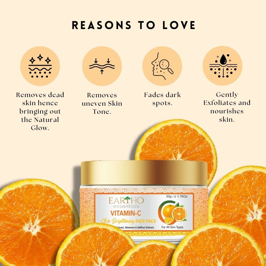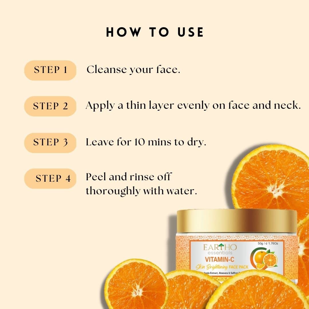 Introducing Eartho Essentials Ayurvedic Vitamin C Skin Brightening Gel Face Pack a rejuvenating skincare solution designed to elevate your beauty routine. Crafted with precision and care this unique face pack combines the power of Ayurvedic ingredients with the goodness of vitamin C to unveil a radiant and revitalized skin. Ayurvedic Bliss: Immerse yourself in the ancient wisdom of Ayurveda with our thoughtfully formulated face pack. Enriched with Apple Extract Aloevera and Saffron Extract this blend promotes holistic skincare by harnessing the natural benefits of these time-tested ingredients. Vitamin C Boost: Our Face Pack is fortified with Vitamin C a potent antioxidant known for its brightening properties. This powerhouse ingredient helps in achieving even skin tone reduce the appearance of dark spots and promote a youthful glow. Gel-Based Luxury: Experience the indulgence of a gel-based formula that glides effortlessly onto your skin. This lightweight texture ensures easy application quick absorption and a refreshing sensation leaving your skin feeling hydrated and nourished. Nourishment Redefined: The inclusion of Aloevera provides deep hydration Apple Extract offers a burst of antioxidants and Saffron Extract promotes a healthy even skin tone. Together they create a harmonious blend that addresses multiple skincare concerns. Free from Harmful Chemicals: This face pack is free from parabens sulfates and artificial colors ensuring a clean and safe skincare routine. Radiance Unleashed: Unveil your skin's natural radiance as the face pack works to brighten and revitalize dull and tired-looking skin. Achieve a radiant skin that reflects your inner glow. Free from Harmful Chemicals: This face pack is free from parabens sulfates and artificial colors ensuring a clean and safe skincare routine. Transform your skincare routine with Eartho Essentials Ayurvedic Vitamin C Skin Brightening Gel Face Pack – the perfect fusion of tradition and modern skincare. Elevate your glow and embrace the beauty of natural radiance.