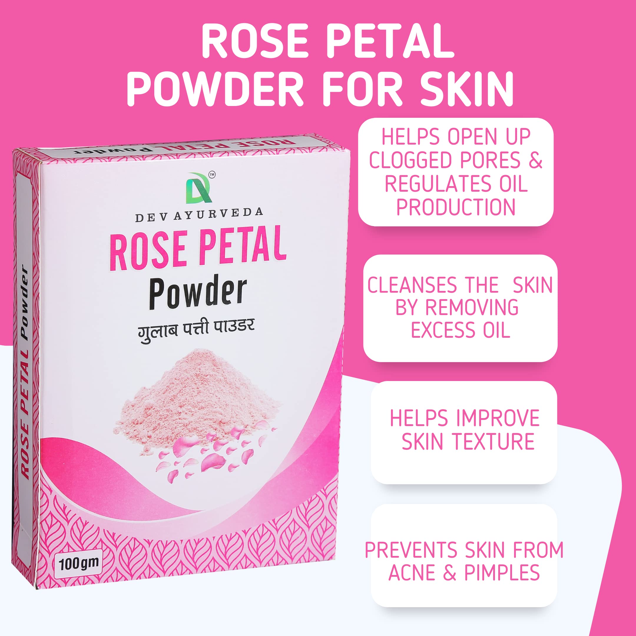 Dev Ayurveda Rose Petal Powder 200Gm. (100gm X 2) For Glowing Skin