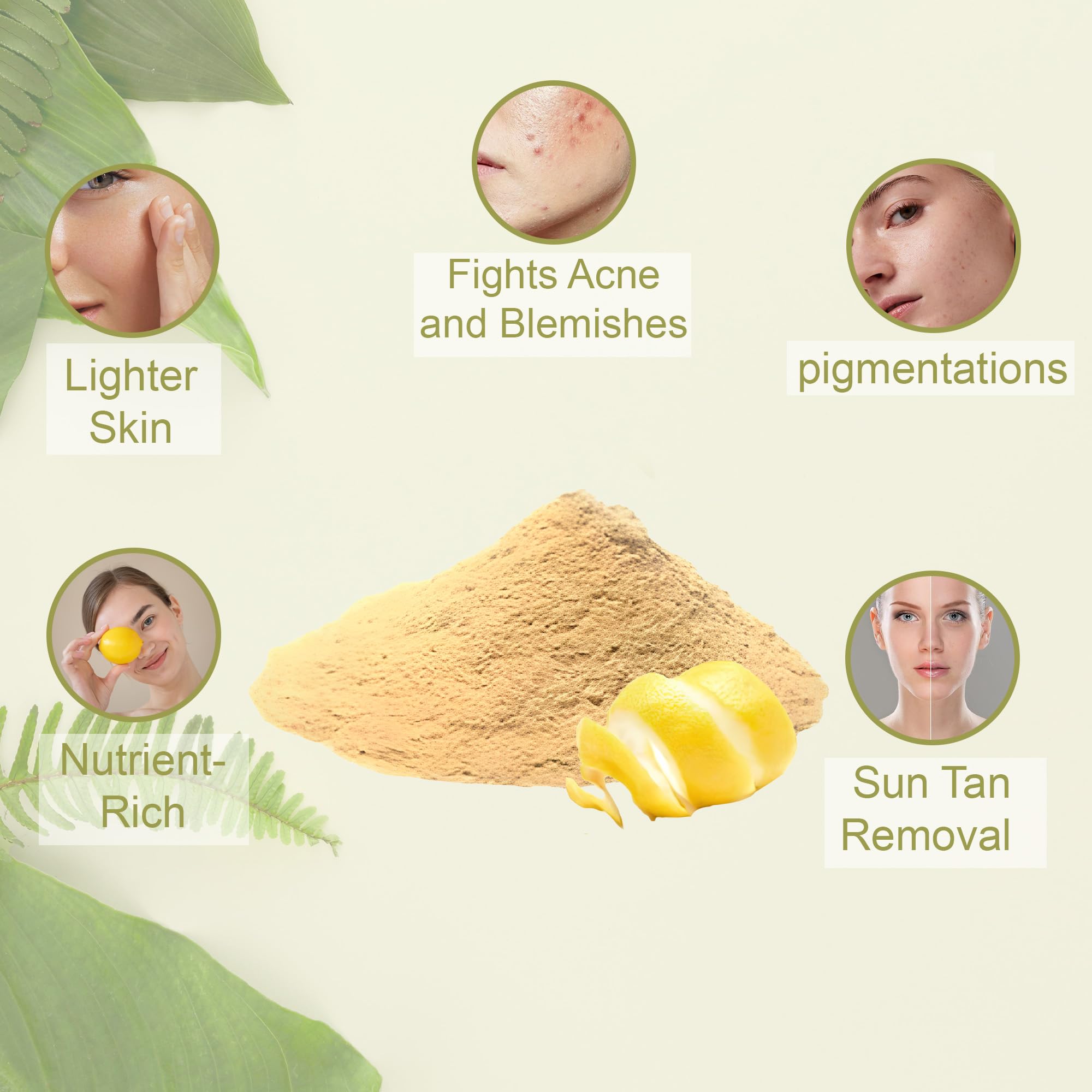 • Face Pack: Mix 1 tablespoon of lemon peel powder with 1 tablespoon of turmeric and enough milk to make a paste. Apply to the face and leave for 15-20 minutes before rinsing off.