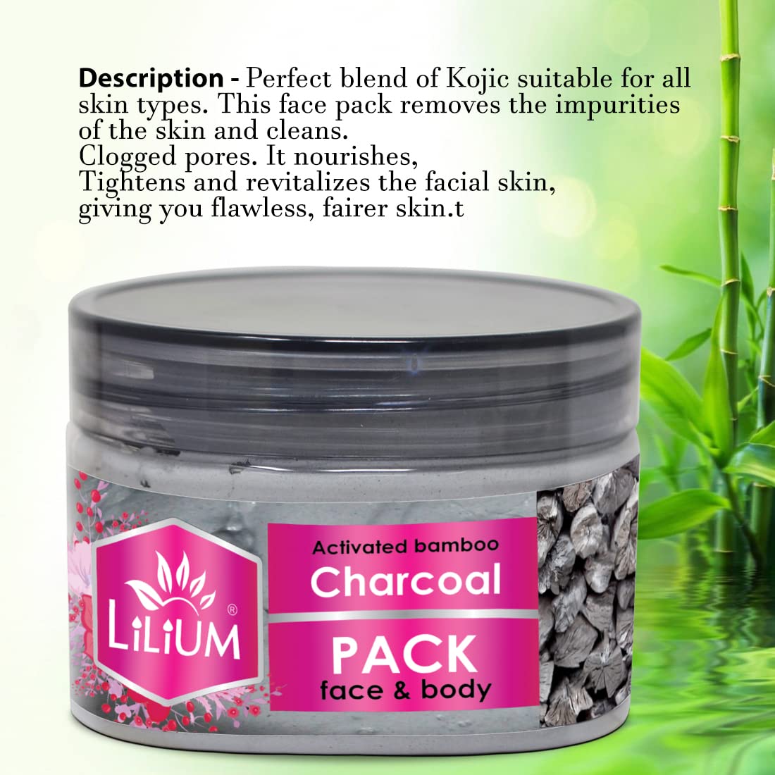 Lilium Activated Bamboo Charcoal Face & Body Pack For Fairer & Clearing Skin 250g