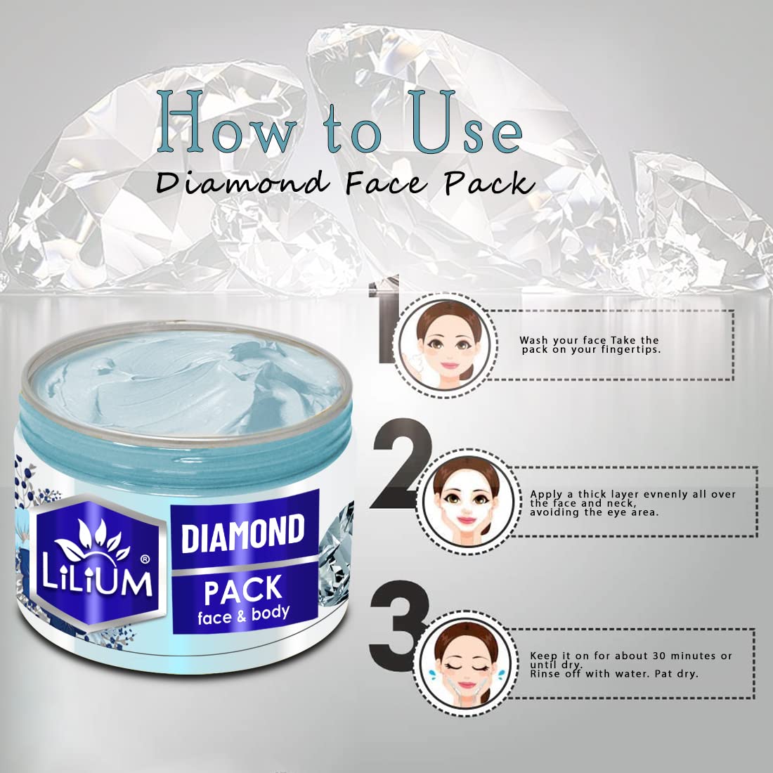 Indulge in the epitome of luxury with Lilium Diamond Face Pack a skincare marvel infused with the opulent essence of diamonds. Crafted to deliver unparalleled radiance and rejuvenation this exclusive formulation promises a transformative experience for your skin. Gentle yet effective our Diamond Face Pack harnesses the exfoliating prowess of diamond particles to delicately slough away dulling dead skin cells revealing the silky softness and refined texture beneath. Hydration is effortlessly restored as moisturizing ingredients imbue the skin with a dewy suppleness ensuring a complexion that feels as luxurious as it looks.