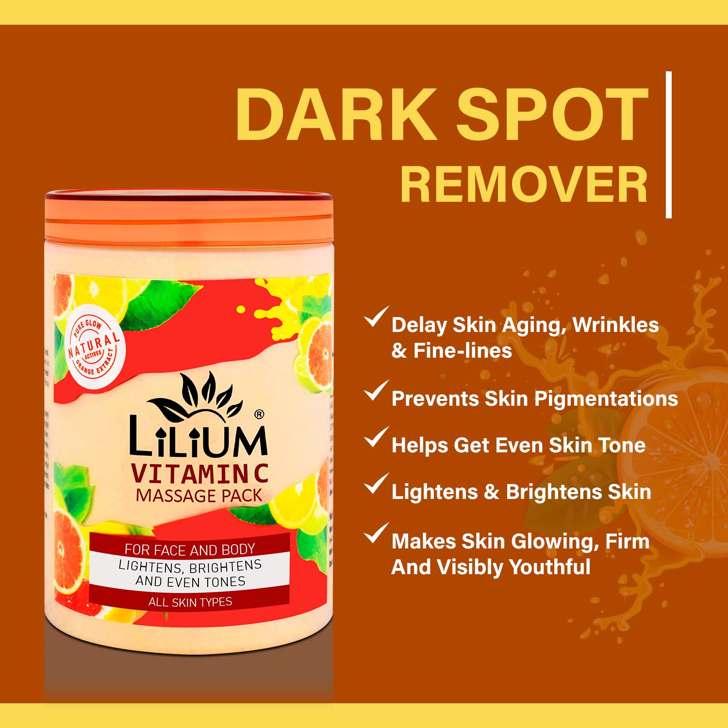 Lilium Radiant Glow Massage Pack Vitamin C 500ml | Prevents Skin Pigmentation | Helps Diminish Acne & Pimple Marks | Lightens Brightens & Even Tones | Suitable All Skin Types