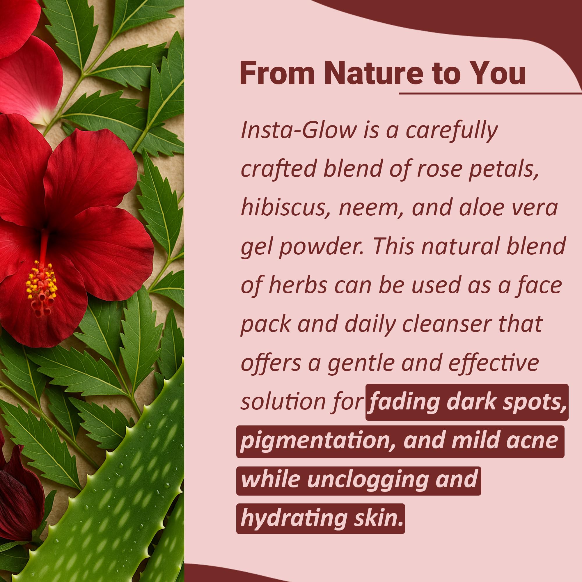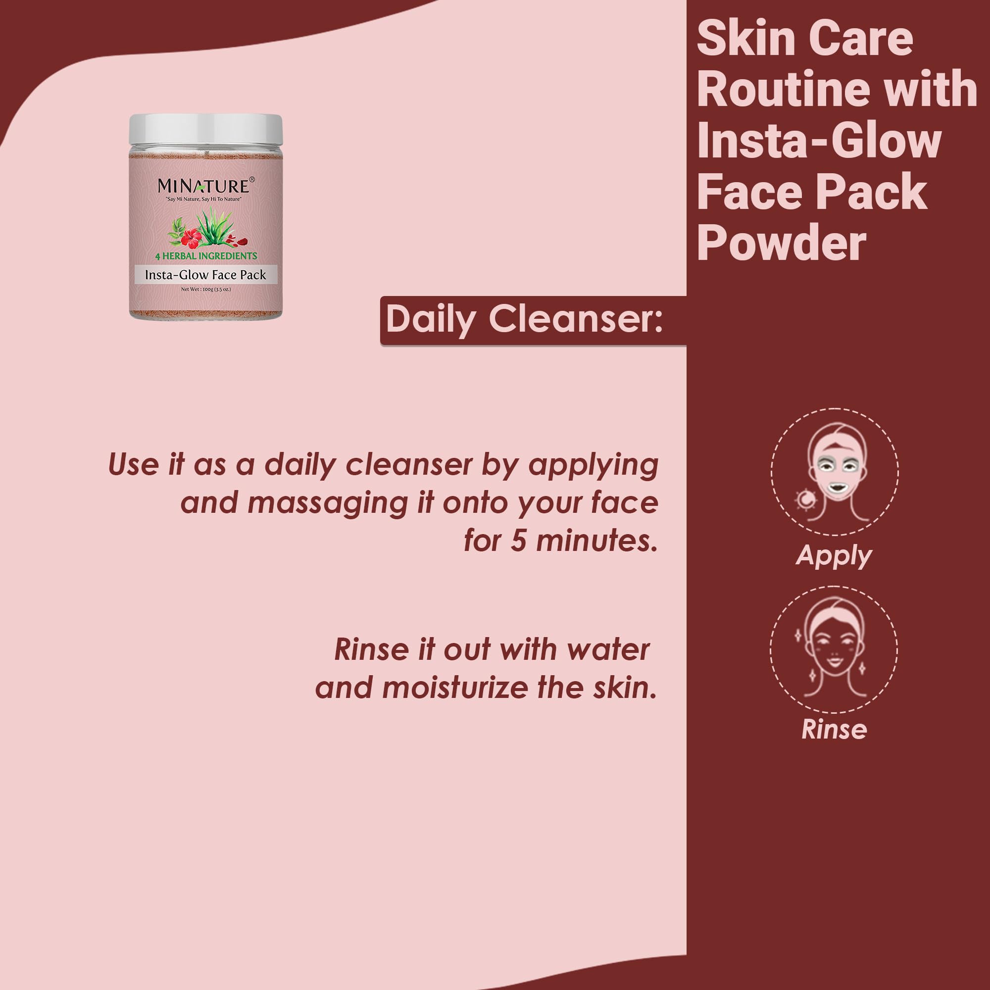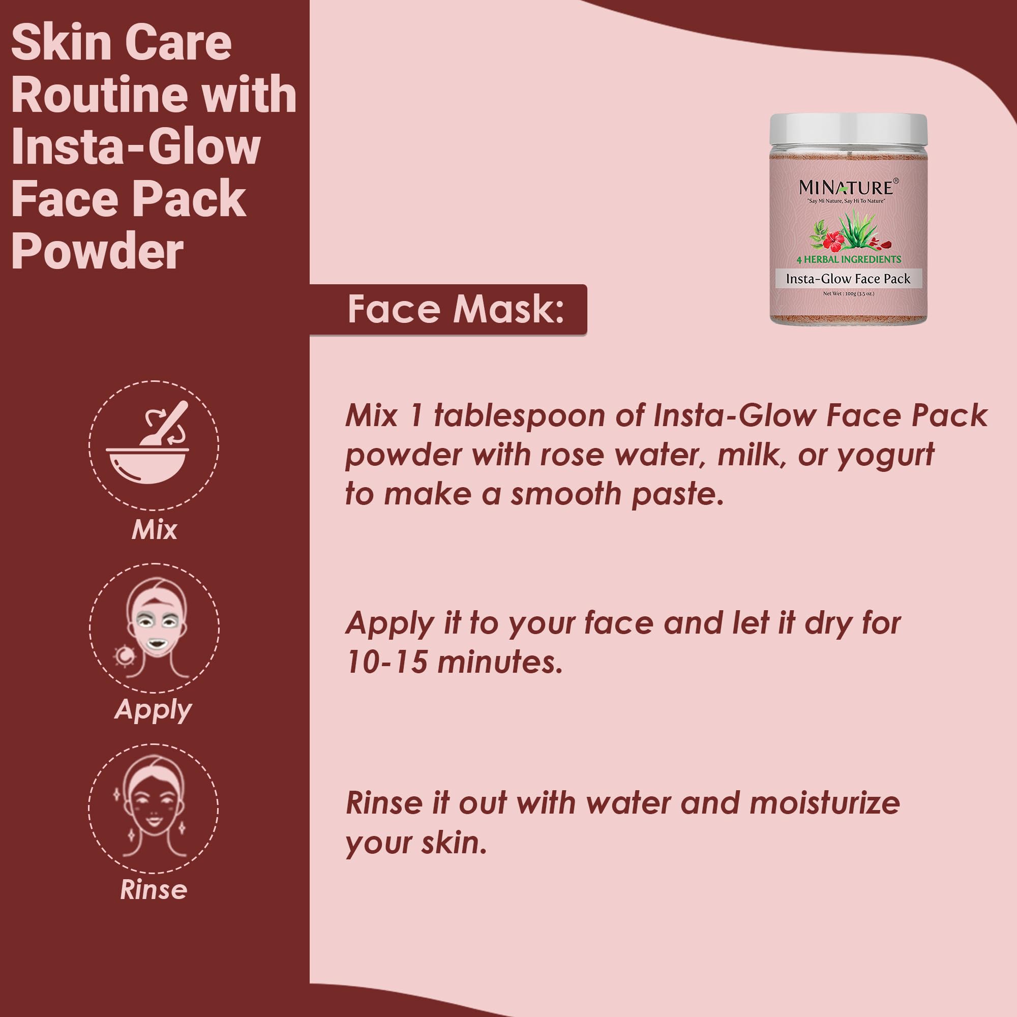 HomeBeautyFace CareMasksFace PacksMi Nature Insta Glow Face Pack 100g (3.5 Oz) |Facial Mask with Neem Hibiscus Rose petal and Aloe vera gel powder | Natural Skin care