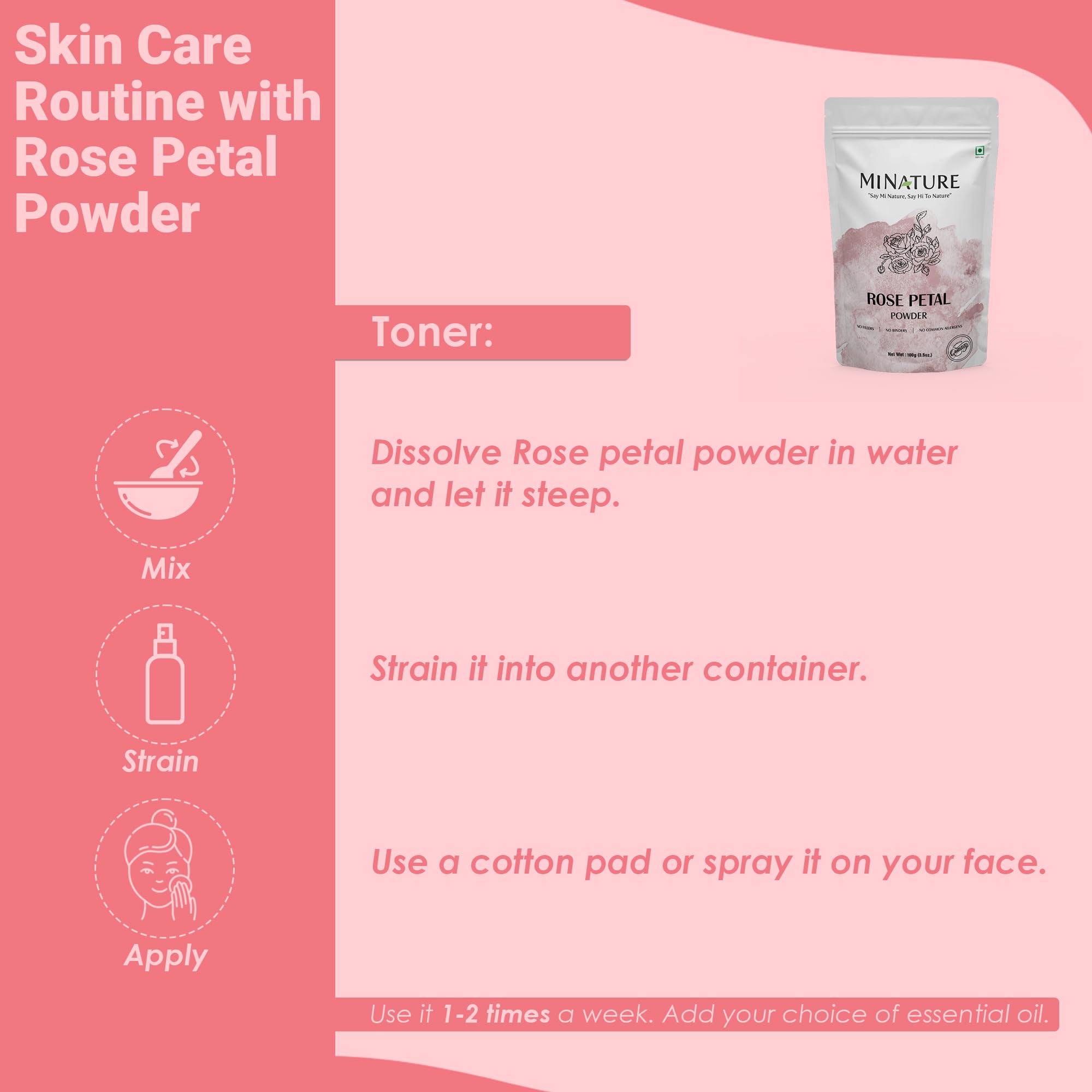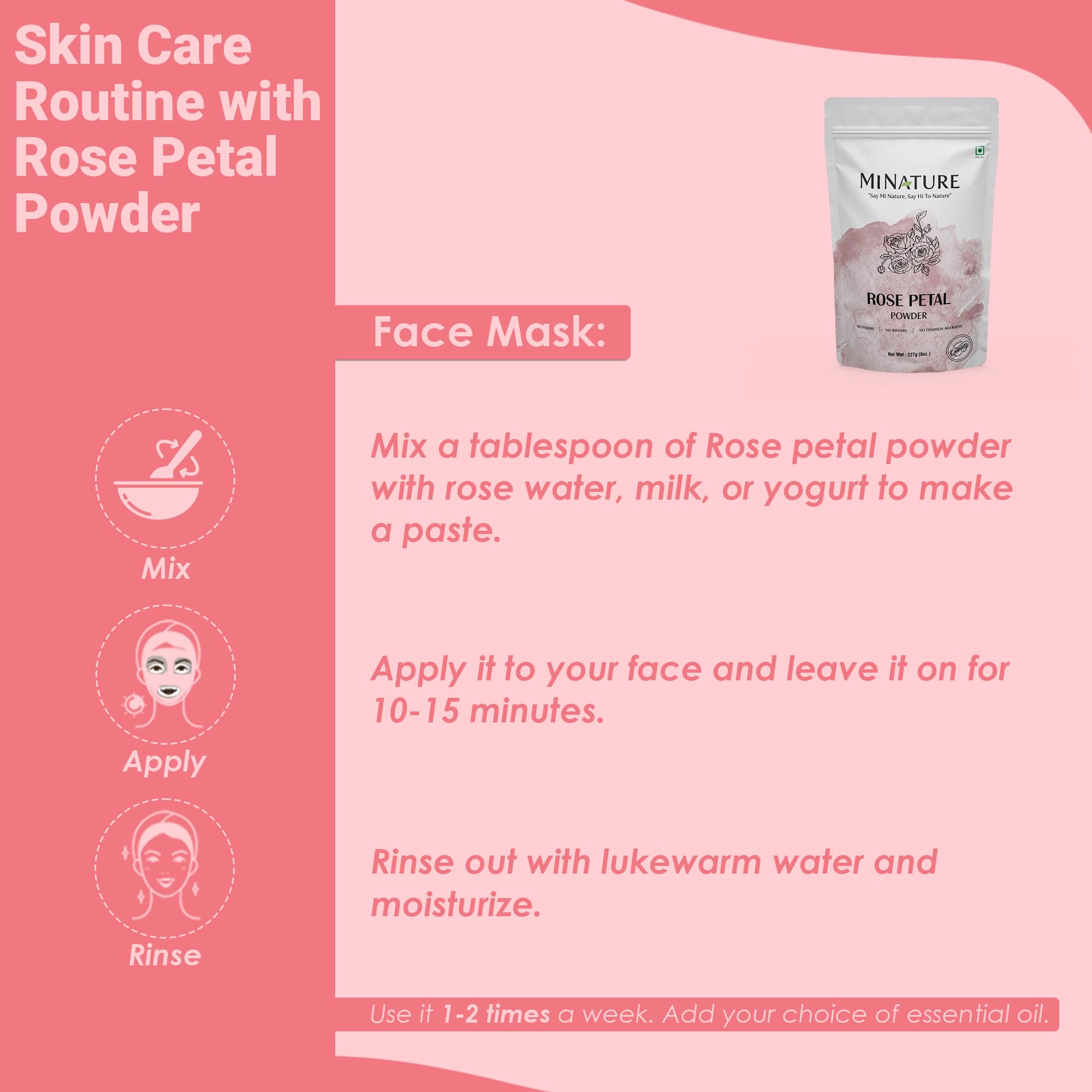 HomeBeautyFace CareMasksFace PacksMi Nature Pure Rose Petal Powder 227g(8 oz)|100% Natural Premium Face Pack Powder for Hydrating & Refreshing |Face Mask for Cleansing & Hydration