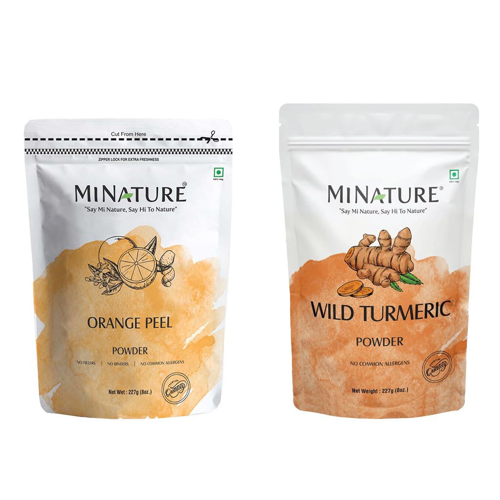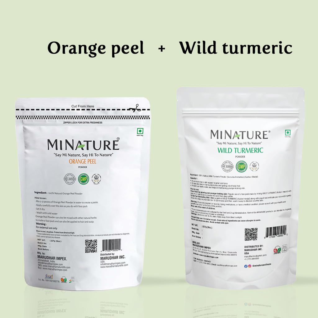 minature Combo of Orange Peel and Wild Turmeric Powder| For Natural Beautiful Skin | Face Pack for De-Tan Darkspots & All types of Skin | 227 grams Each (227g * 2)
