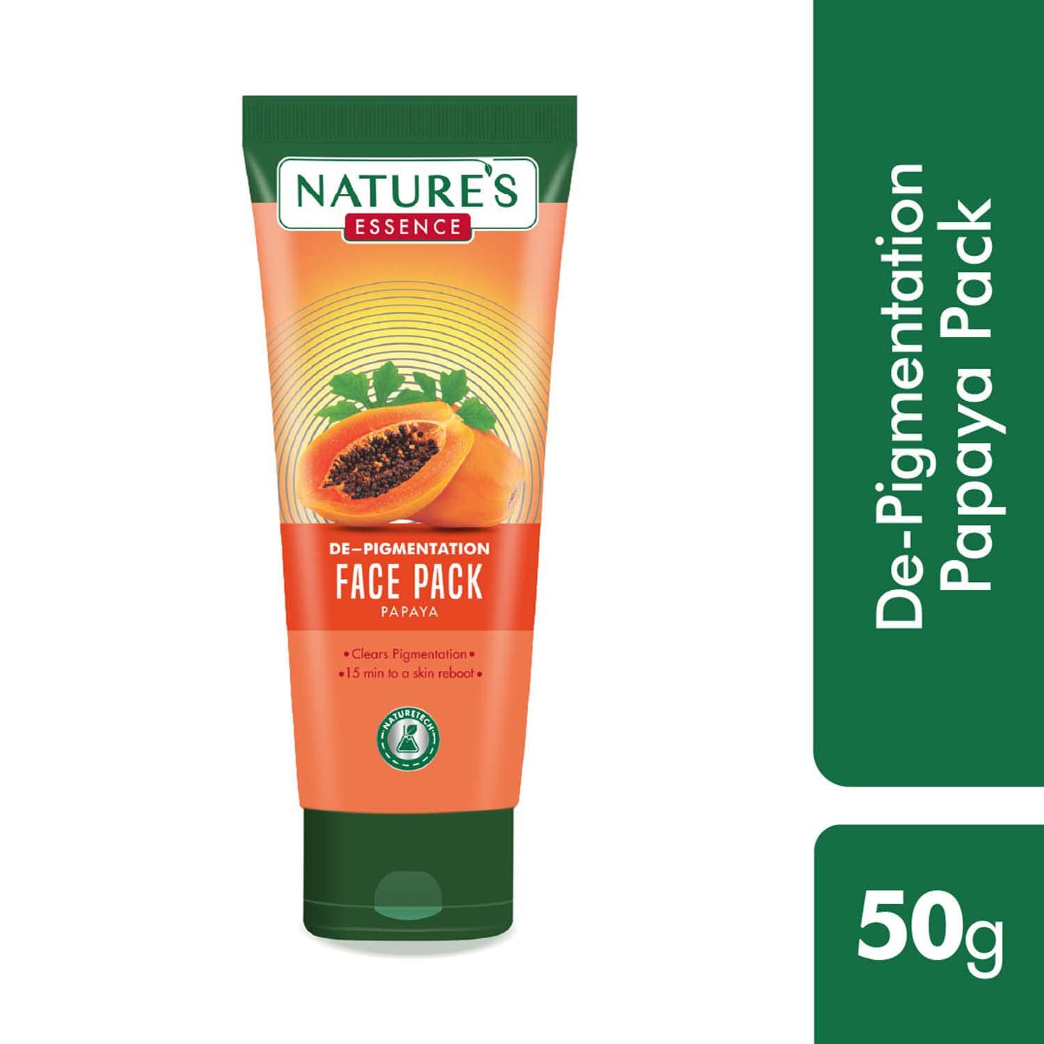 Eliminate dark spots and uneven skin tone with Natures Essence De-Pigmentation Papaya face pack. Natures own scar-remover papaya has a potent enzyme that targets hyperpigentation and visibly reduces discolouration while fruit antioxidants improve skin texture restoring youthfulness. Suitable for all skin types.