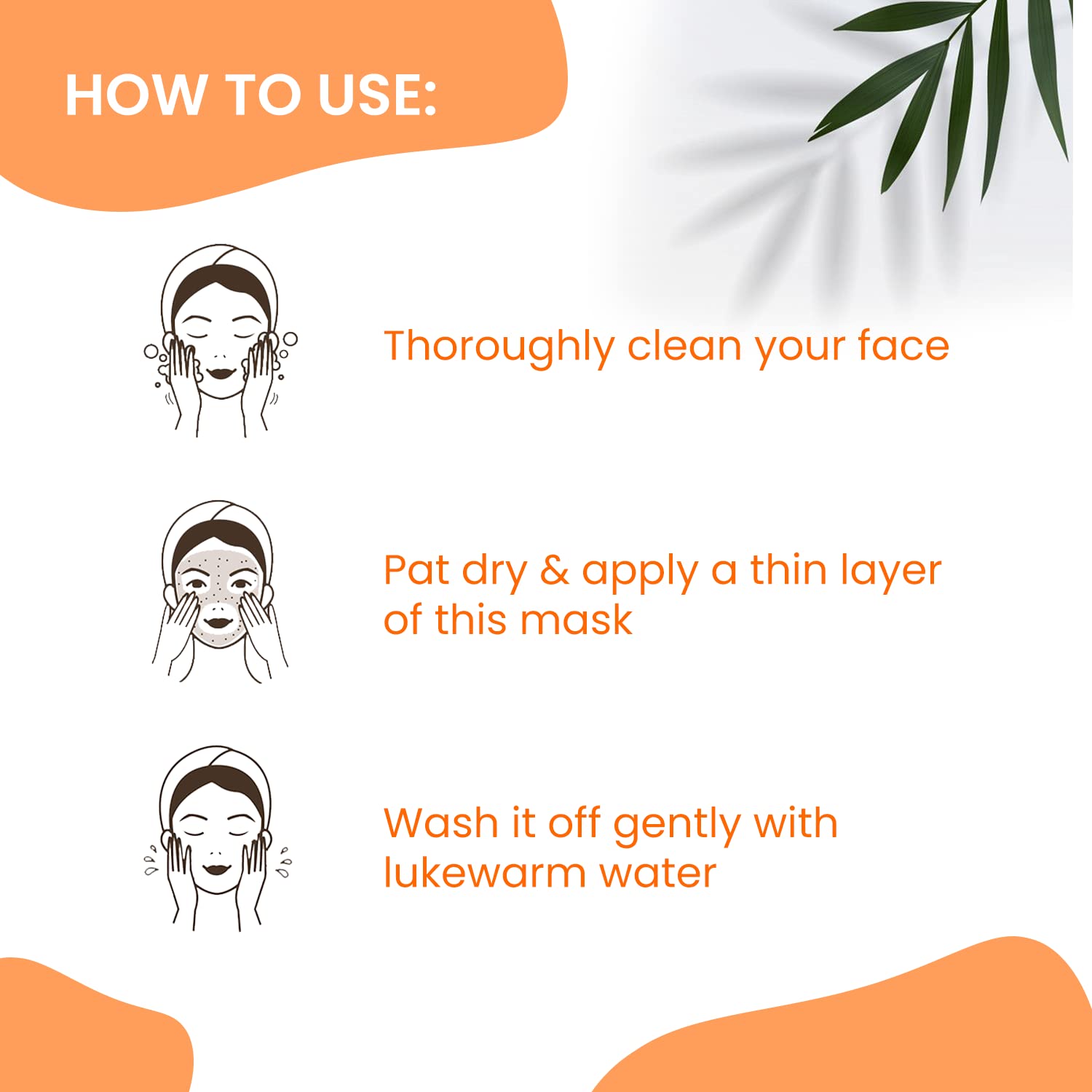 • You can evenly apply a thin layer of this face pack on a well-cleansed dry face and neck area then wait for 10-15 minutes or until it dries off completely. Please remove the mask by rinsing it with lukewarm water in a scrubbing motion. Follow it up with a