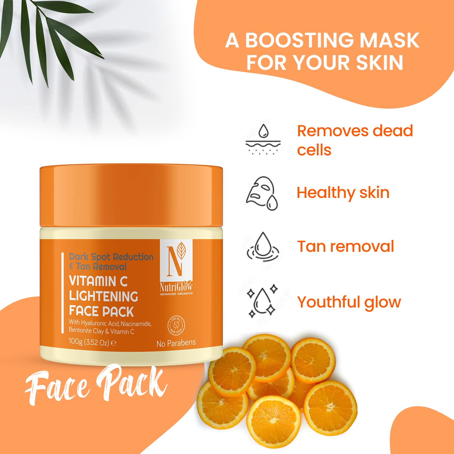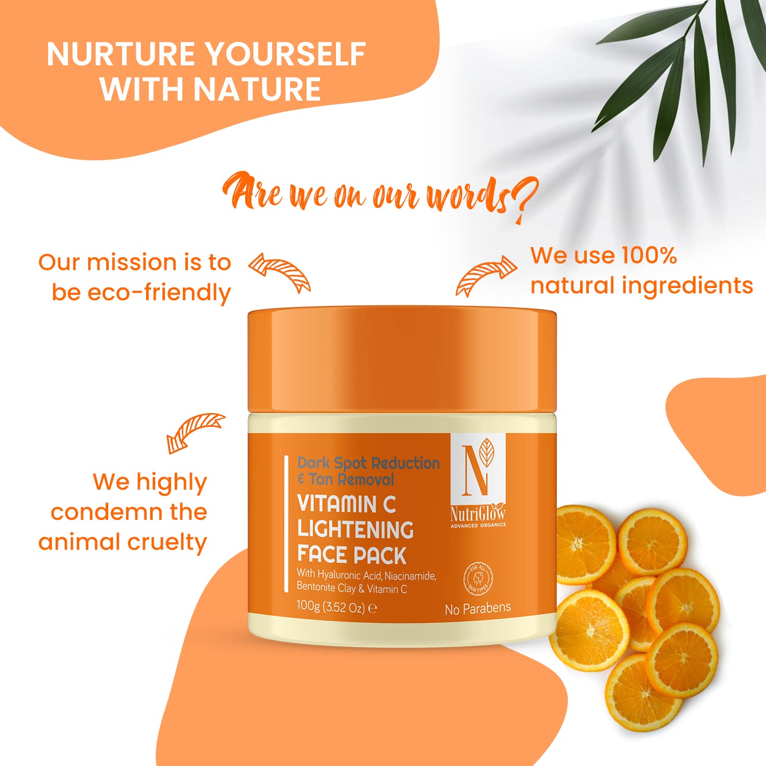 NUTRIGLOW Advanced Organics Vitamin C Lightening Face pack for Dull Skin Pigmentation & Dark Spots with Niacinamide 100g