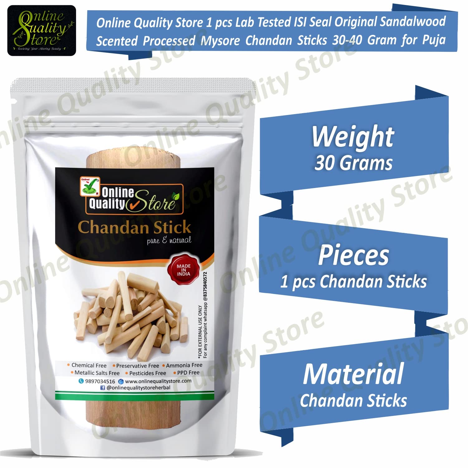Online Quality Store Chandan Wood 1 pcs Lab Tested Isi Seal Sandalwood Scented Processed Chandan Sticks 30-35g |Sandalwood Sticks |Original Sandalwood Scented Processed Mysore Chandan Sticks