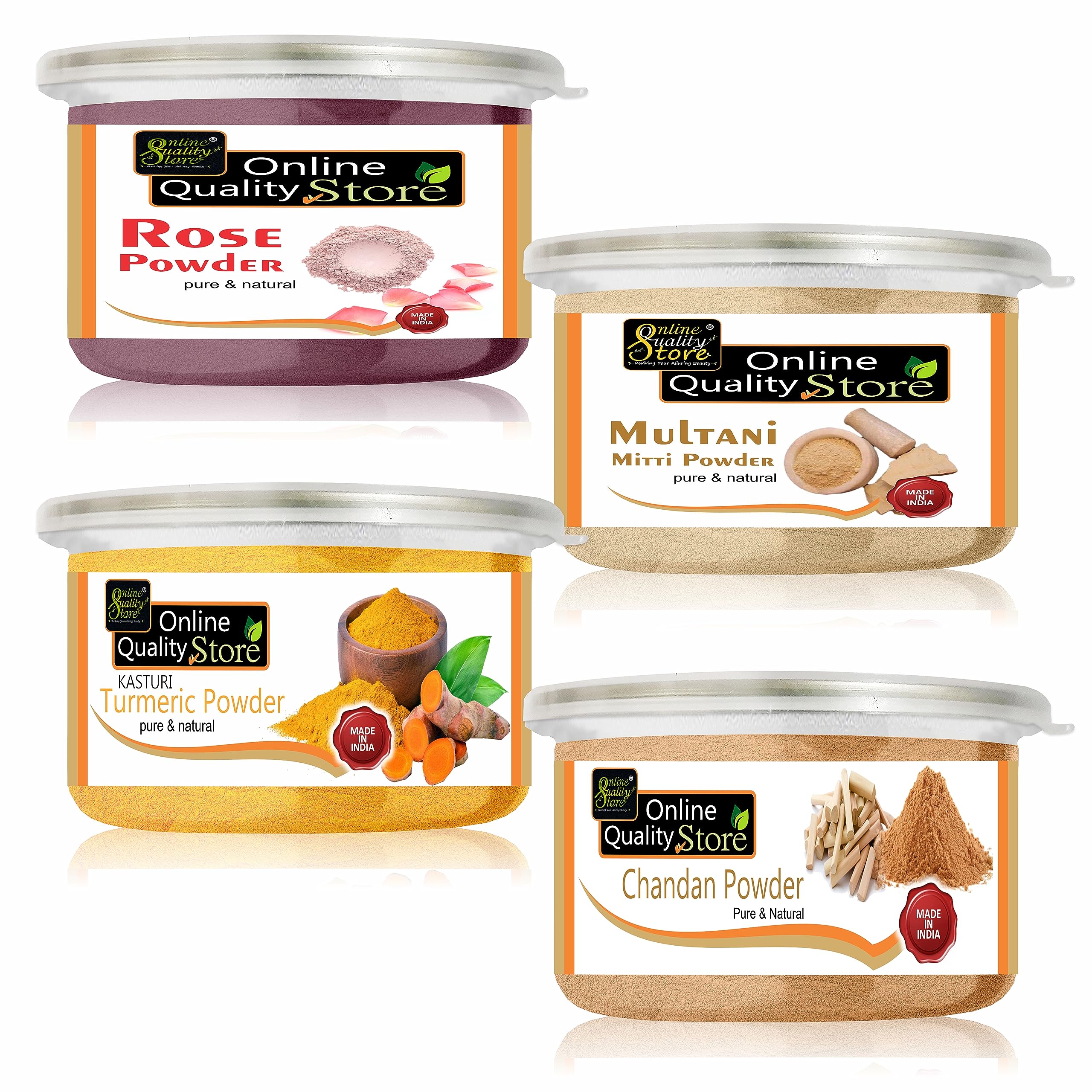 100% Natural Online Quality Store Multanimitti Powder (200g) + Chandan Powder (75g) + Kasturi Turmeric Powder (100g) + Rose Powder (125g) Perfect Combo PackOnline Quality Store Multanimitti Powder (200g) + Chandan Powder (75g) + Kasturi Turmeric Powder (1