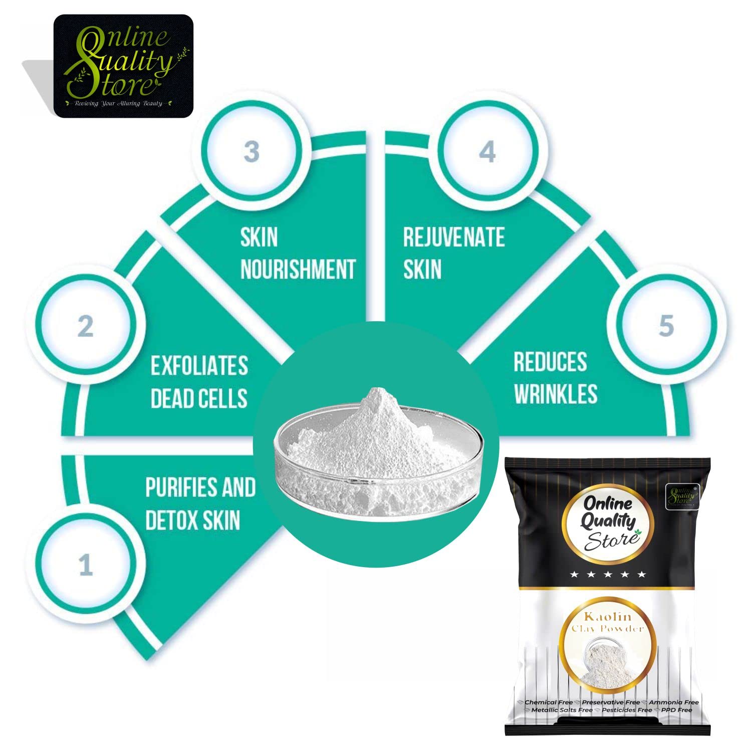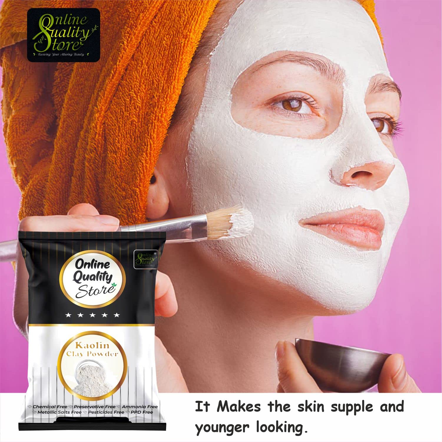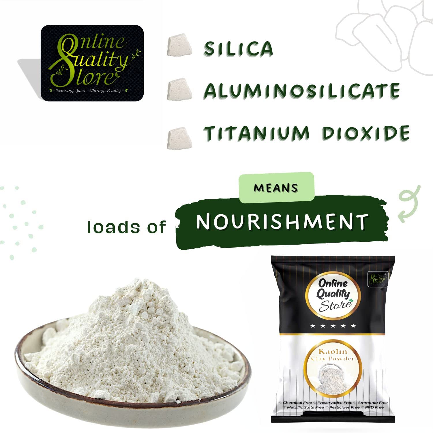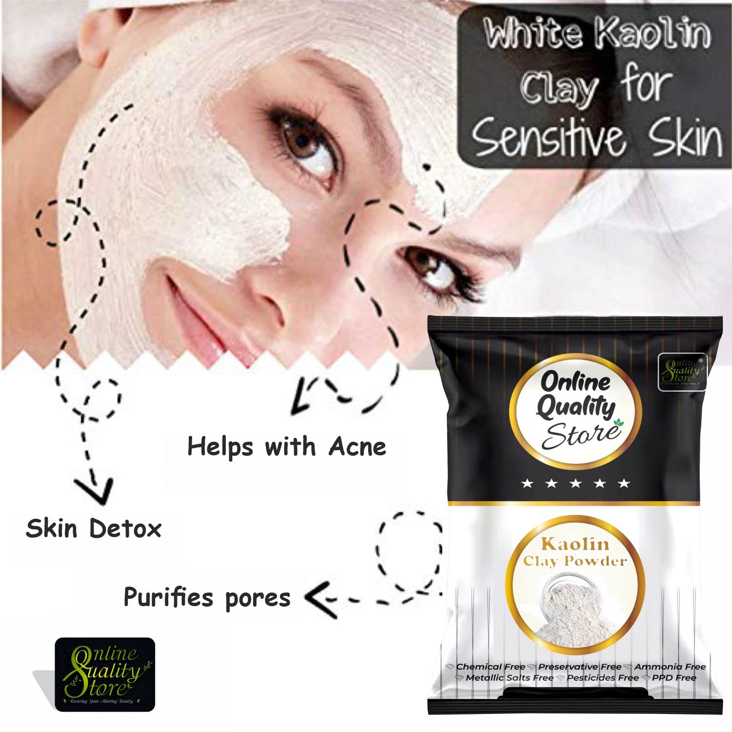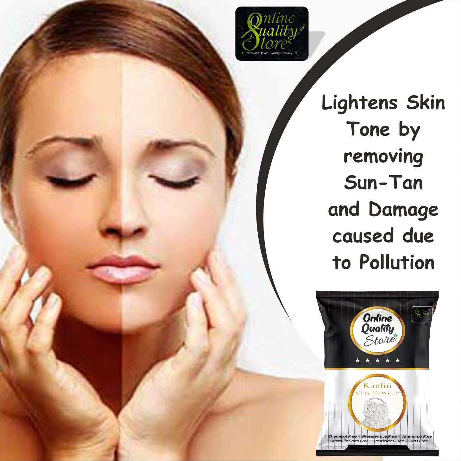 Kaolin white clay helps to lighten sun tan and minimizes blemishes and marks