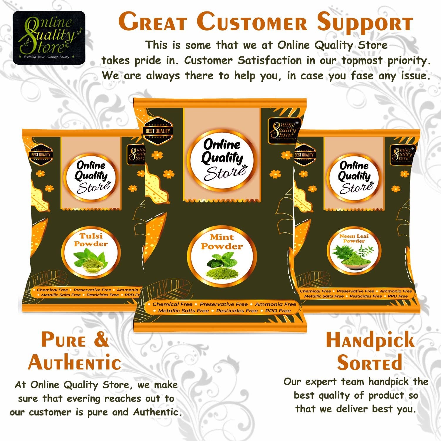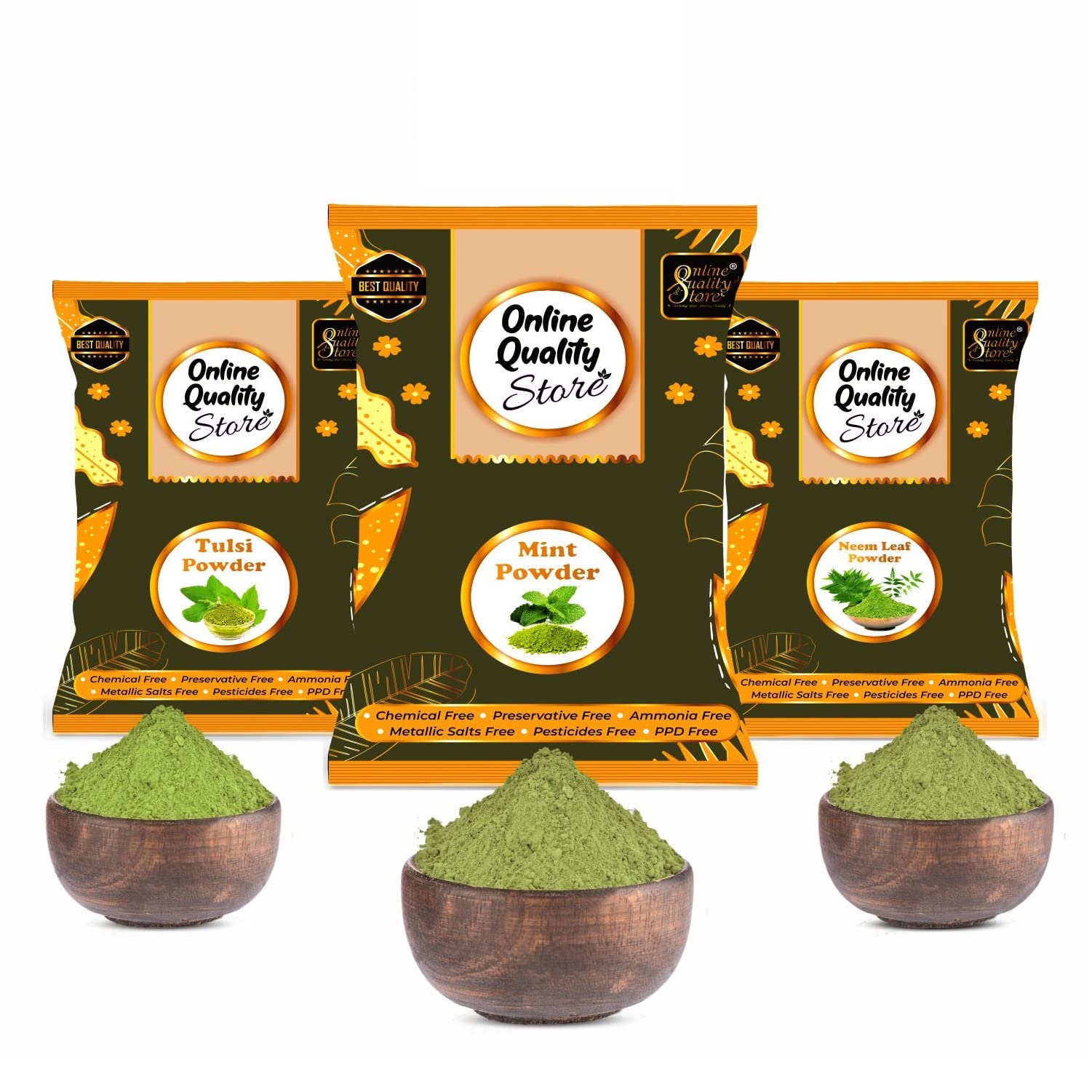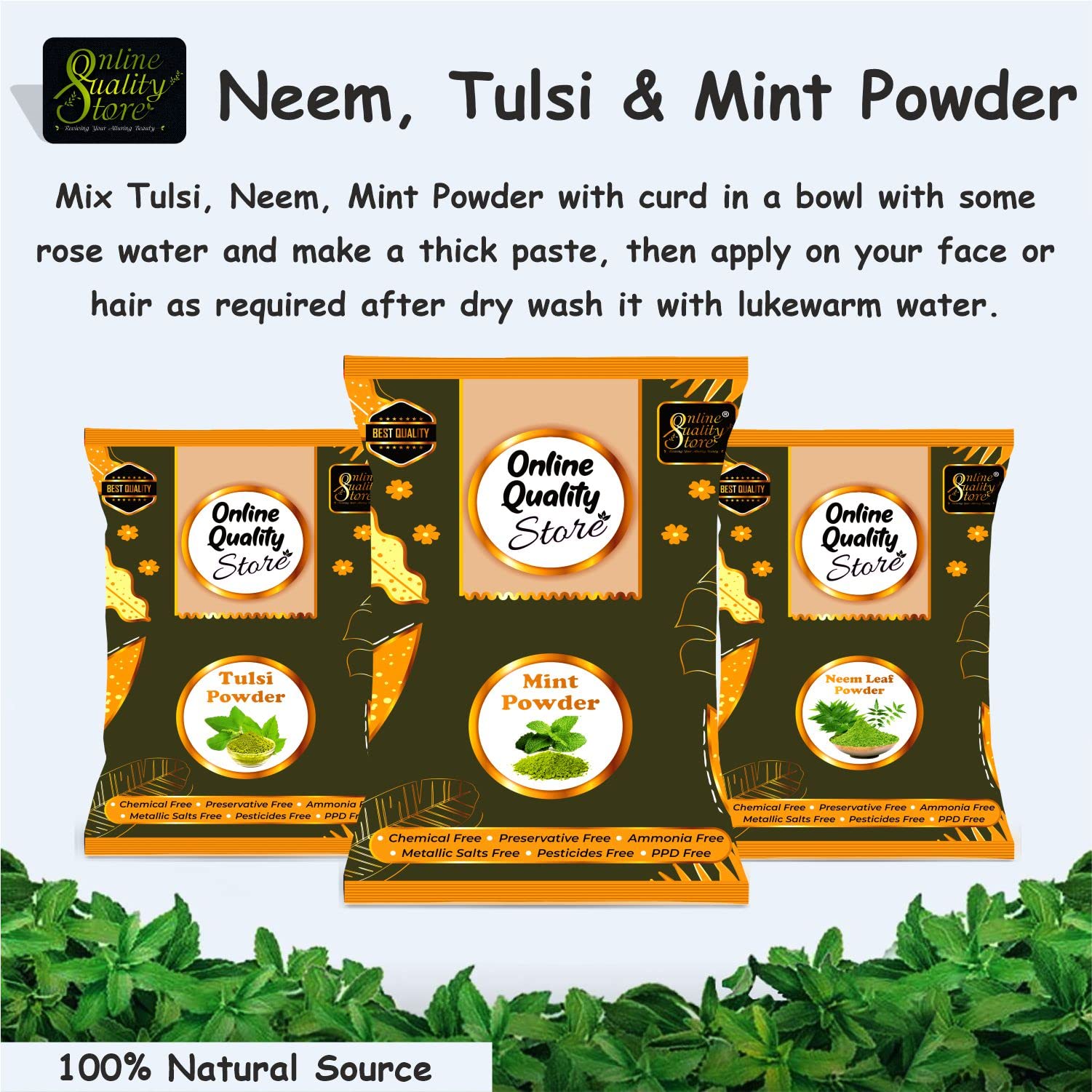 Online Quality Store Neem Powder (350 Grams) + Tulsi Powder (350 Grams) & Mint Powder (200 Grams)