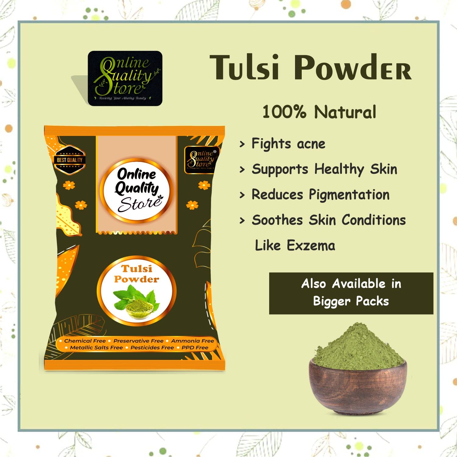 Tulsi l powder is a natural skin toner best solution for uneven skin tone and pigmentation.