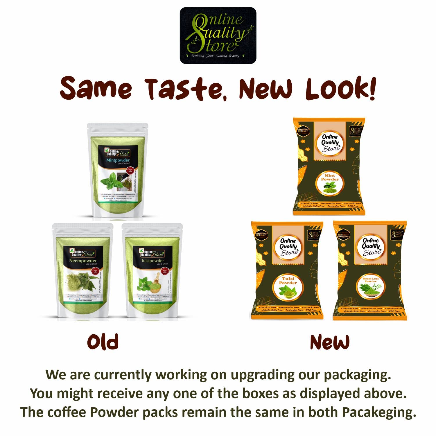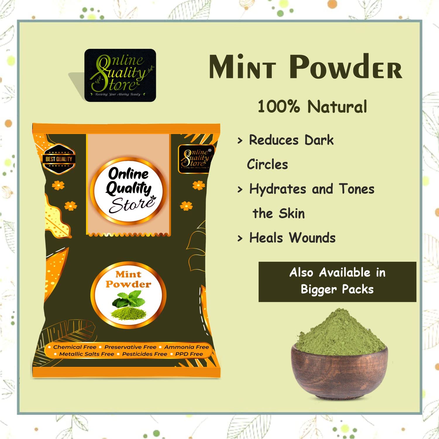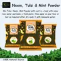 mint powder for skin .( In 400 Grams : - Neem = 150 grams Tulsi = 150 grams Mint = 100 grams ) and (In 900 Grams:- Neem = 350 Grams Tulsi = 350 Grams Mint = 200 grams )