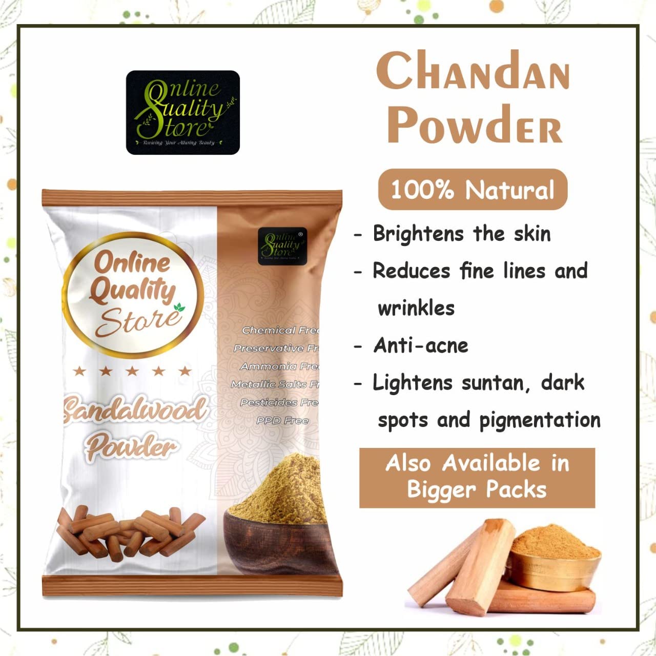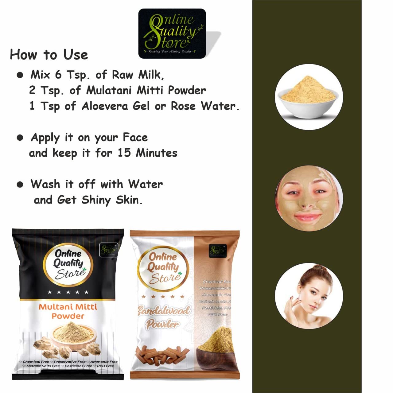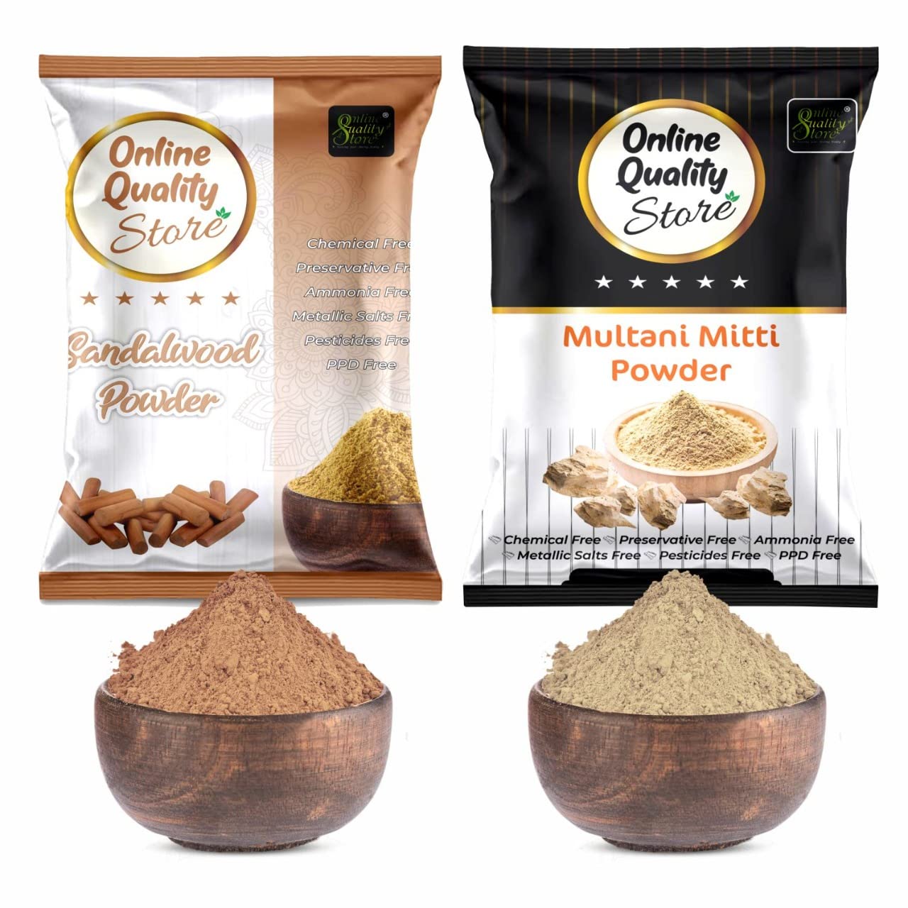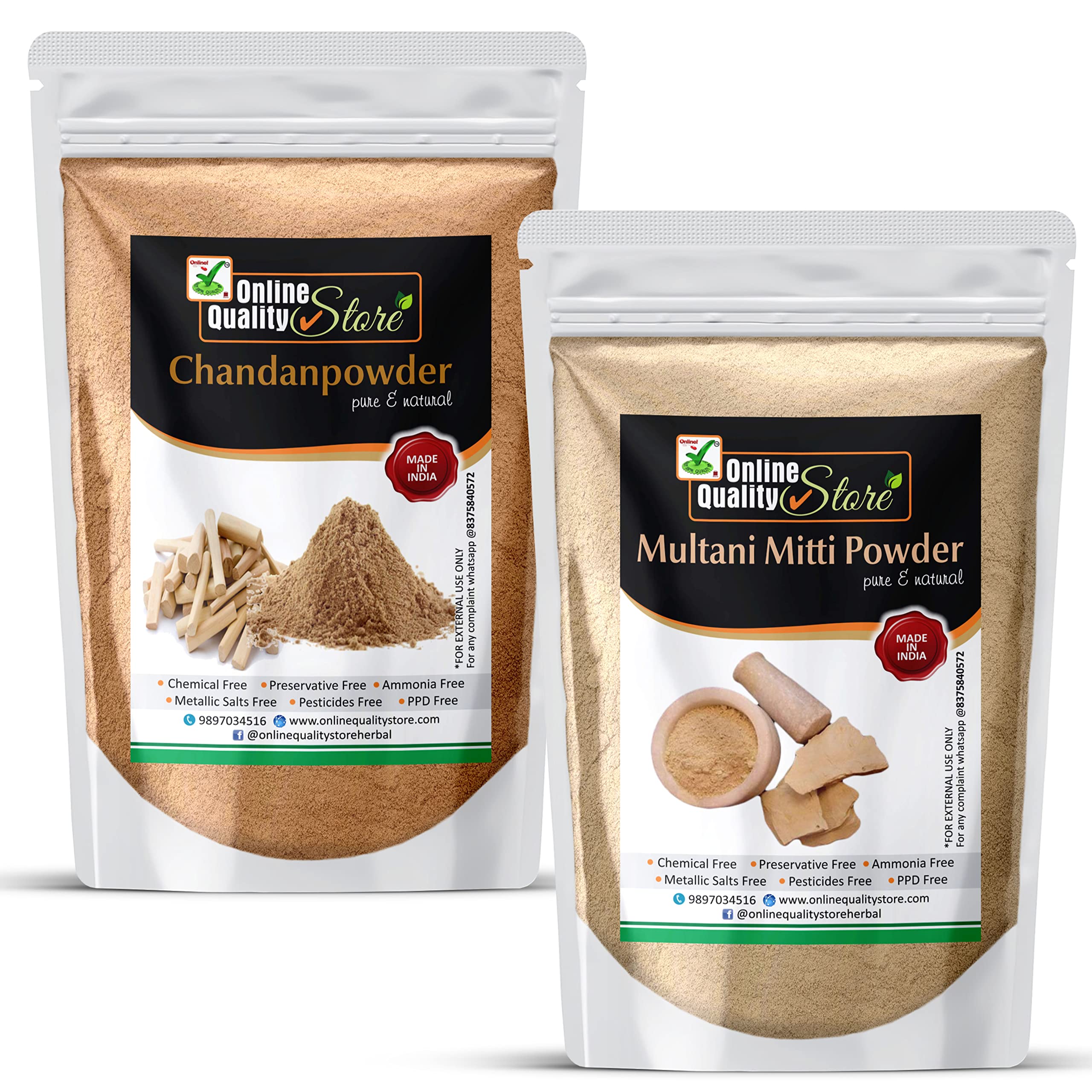 Online Quality Store Sandalwood Powder For Skin (Chandan Powder 100g) + Pure Multani Mitti Powder (150g) |sandalwood powder for facepujaskin |Bentonite Clay |Fuller's Earth250g Pack