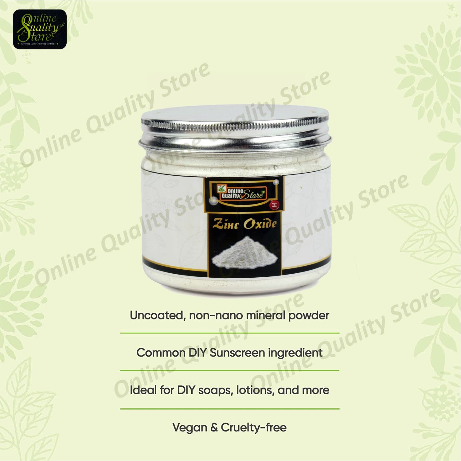 It's a very gentle ingredient on the skin and is one of the main constituents of traditional calamine lotion which is used extensively against redness stinging and irritation of the skin. Zinc Oxide powder gives the skin a gentle toning action. It has soothing properties that act on the skin when applied to give a cooling sensation that distracts from the itching sensation caused by the oil secretions from toxic plants as they come in contact with your skin.