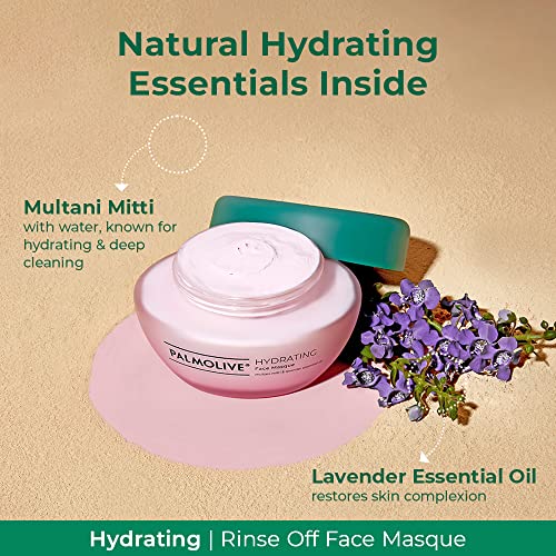 • HYDRATING MASQUE: Dive into skin hydration with our Palmolive Hydrating Masque made up of unique blend of Multani Mitti & Lavender Essential Oils. This creamy buttery non-drying clay masque hydrates your skin unlocks natural moisture and nourishes.