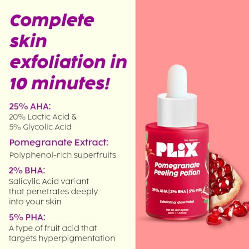 PLIX Pomegranate Peeling Potion & Collagen Powder Combo| 25% AHA, 2% BHA & Collagen| For Deep Exfoliation, Enhanced Skin Elasticity & Younger-Looking Skin| For Women & Men