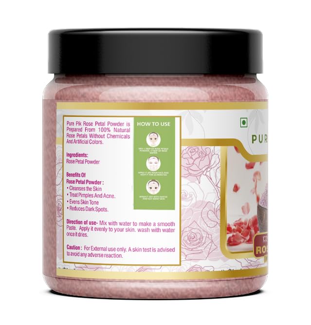 Pure Pik Rose Petal Powder For Face Pack And Skin 200 Gram Jar Pack