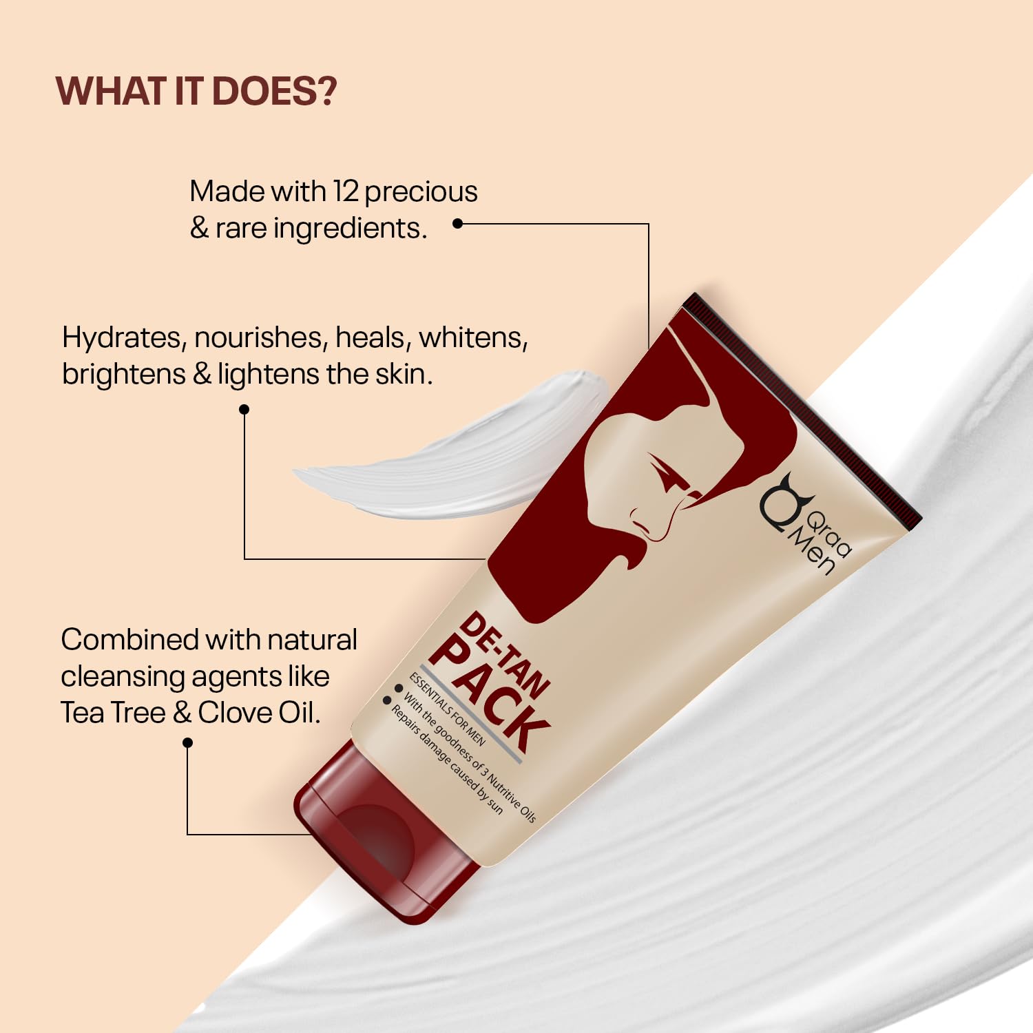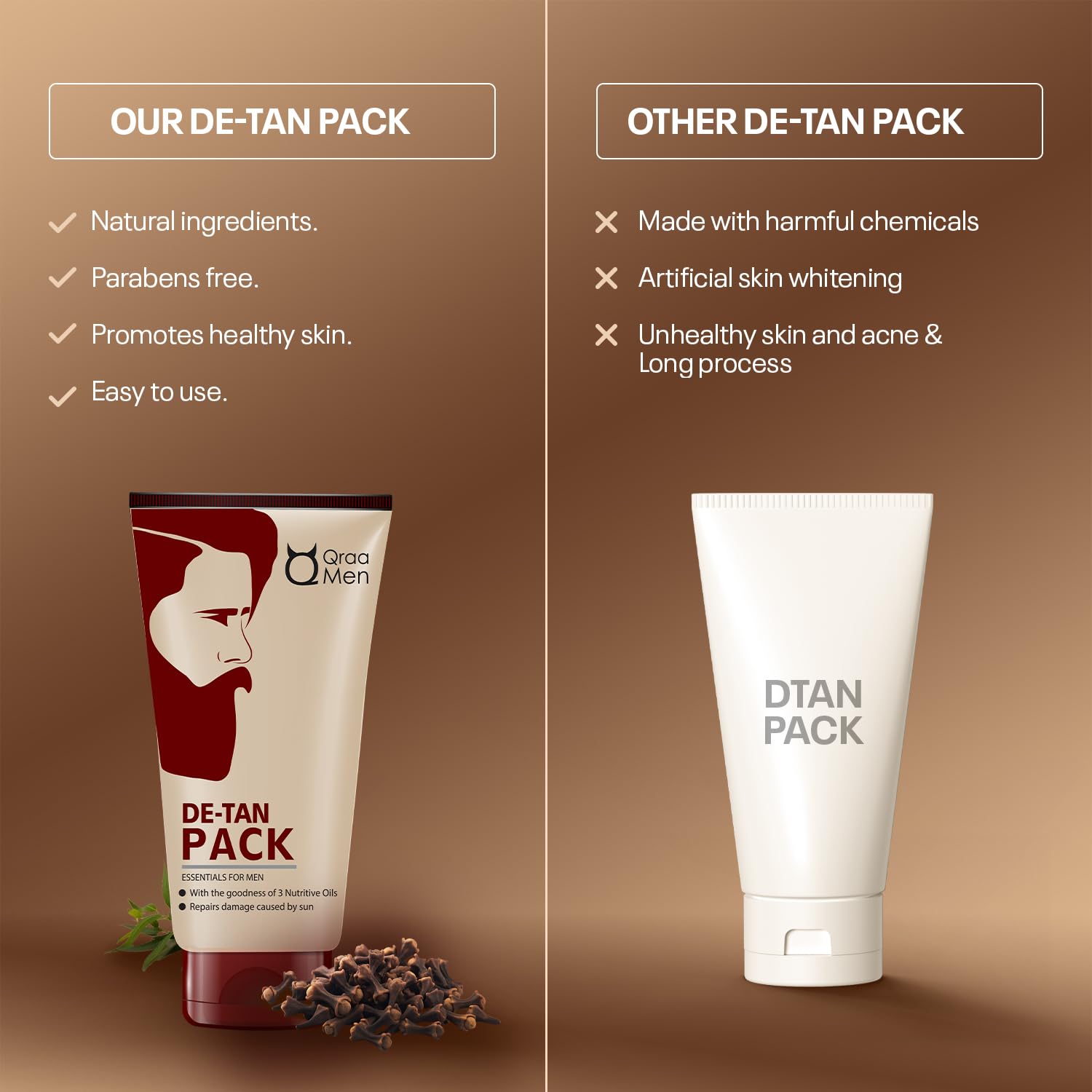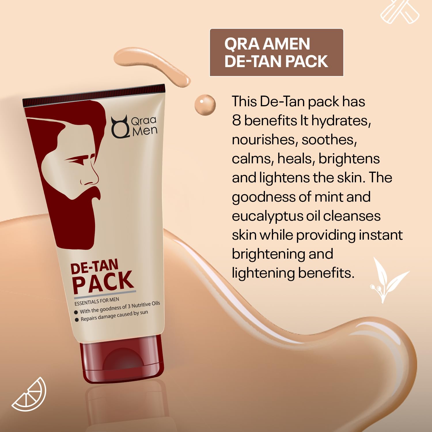 • Qraa Men De - Tan Pack For Men’s comes with multipurpose benefits for the tough skin of the males This brilliant product not only helps do away with sun damage but in addition comes with added lightening and skin brightening benefits.