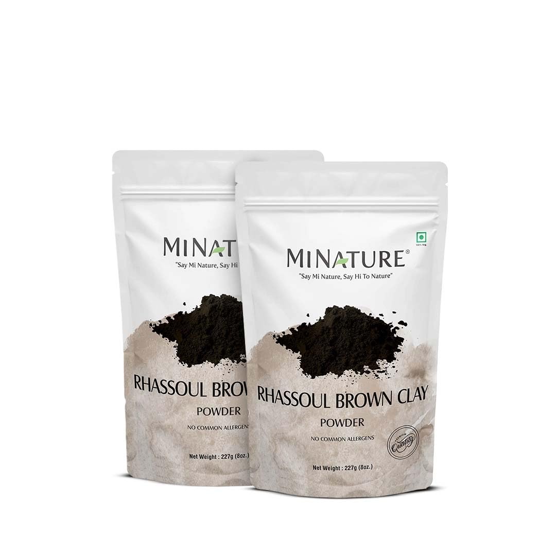 Rhassoul Brown Clay Powder by mi nature | For Sun-Tan Acne-Spot Face Pack & Hair Pack| All Skin Type & Unisex use| 100% pure & Natural | (227g/8 Oz) (Pack of 2)