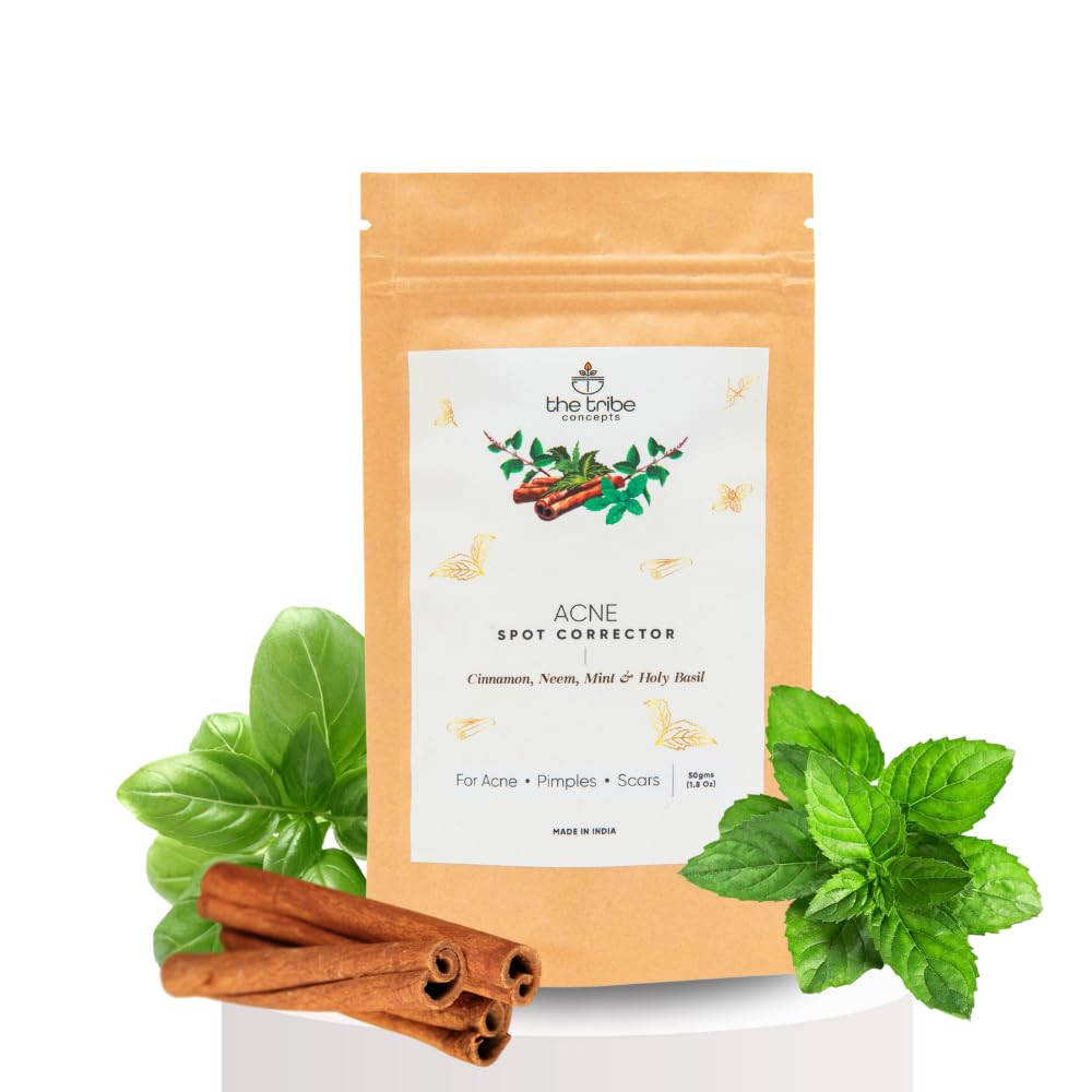 HomeBeautyFace CareMasksFace PacksThe Tribe Concepts Acne Spot Corrector Powder With Cinnamon Neem Mint & Basil For Acne Pimples & Scars - 50 g (Kraft Paper Packing)