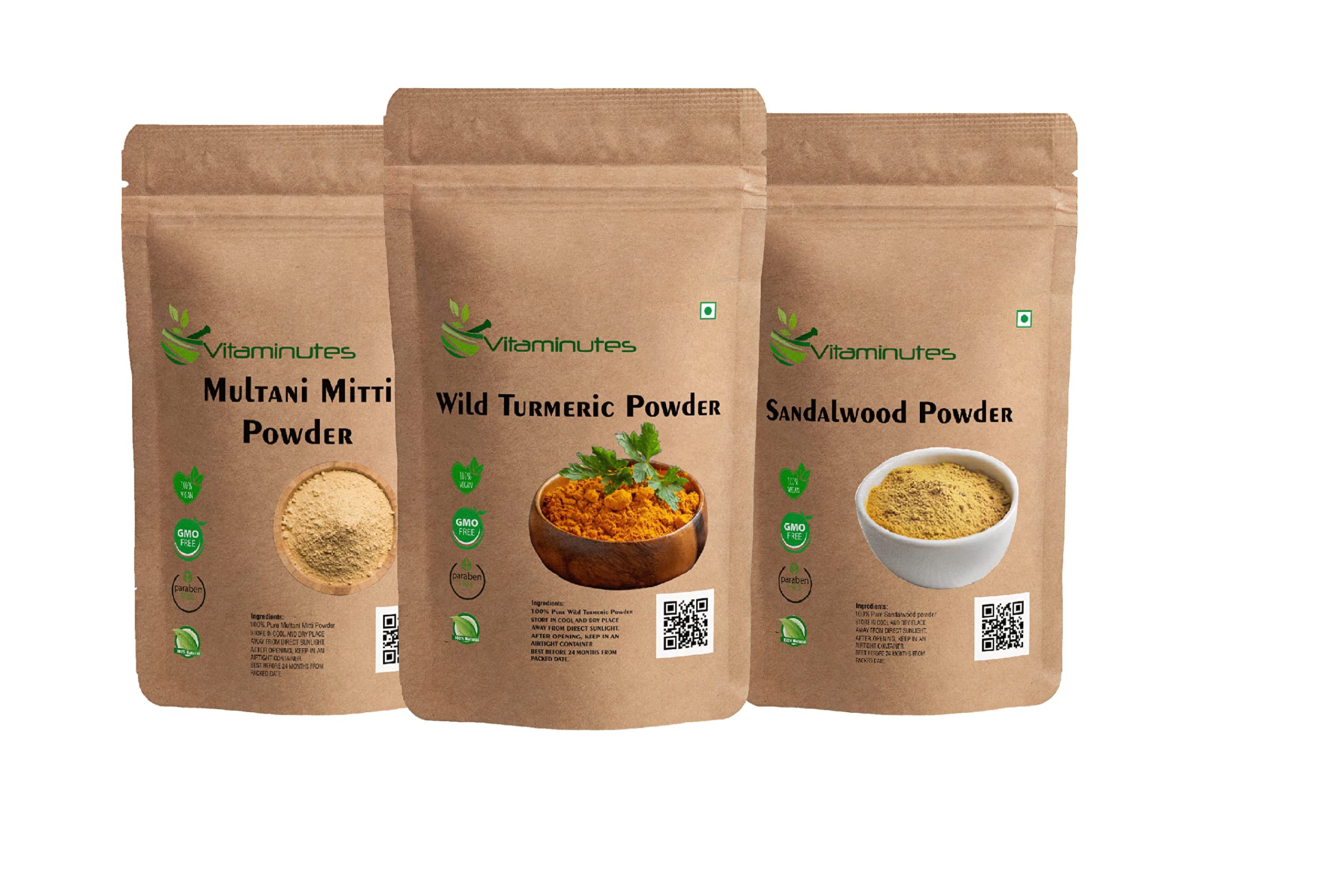 VITAMINUTES 100% Pure Organic Wild Kasturi Turmeric Multani Mitti Powder Sandalwood Powder (300 g)