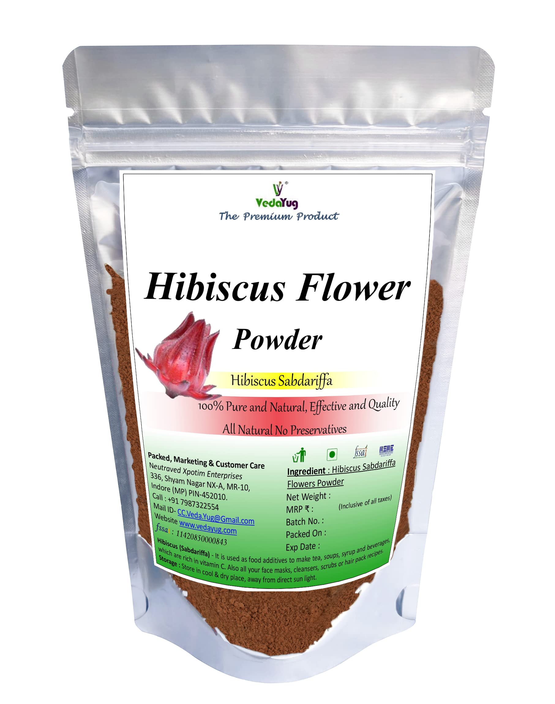 VY VedaYug Organic Hibiscus Flower Powder | Hibiscus rosa-sinensis For Hair Care & Face Pack 100g