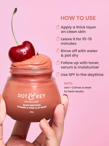HomeBeautyFace CareMasksMasks & PeelsDot & Key Glow Reviving Vitamin C Pink Clay Mask | Face Mask for Glowing Skin | Fades Pigmentation | Hydrates & Plumps Skin | For All Skin Types | For Women & Men | 85g