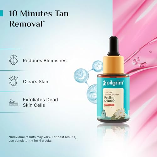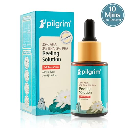 Pilgrim 25% AHA + 2% BHA + 5% PHA Peeling Solution 30ml For Face & Body |10-Minute Facial At Home|Gentle Exfoliating Serum for Tan Removal |For Glowing Skin, Even Skin Tone, Pore Cleansing |Men, Women