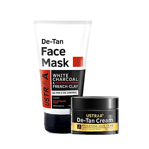Ustraa De-Tan Face Mask Oily Skin - 125 gm - Wash-off Mask | Removes Tan & Pollutants | with White Charcoal & De-Tan Face Cream For Men - 50g | Even Skin tone, Effective Tan Removal, Without Bleach