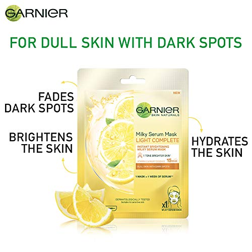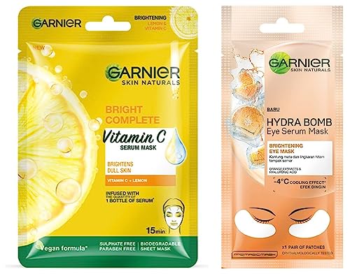 Garnier Skin Naturals Light Complete Face Serum Sheet Mask (Yellow) 30gThis sheet mask is enriched with Lemon and Vitamin C. It is perfect for de-hydrated and dull skin with spots.Garnier Hydra Bomb Eye Serum Mask Orange 6 gThe product comes in safe package. The product will be an excellent pick for you.