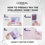 • How to use in 4 easy steps: 1) Fold the LOreal Sheet Mask along the dotted line 2) Press the sachet until the seals break and release the hyaluronic acid serum into the tissue mask compartment 3) Mix well and make sure the tissue becomes fully soaked 4) O