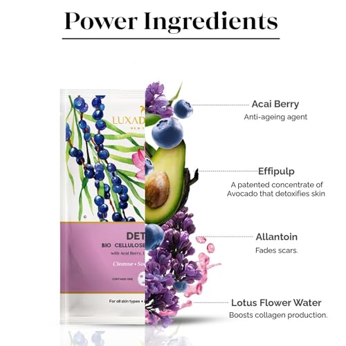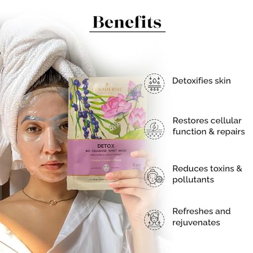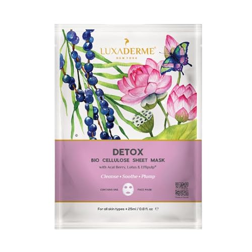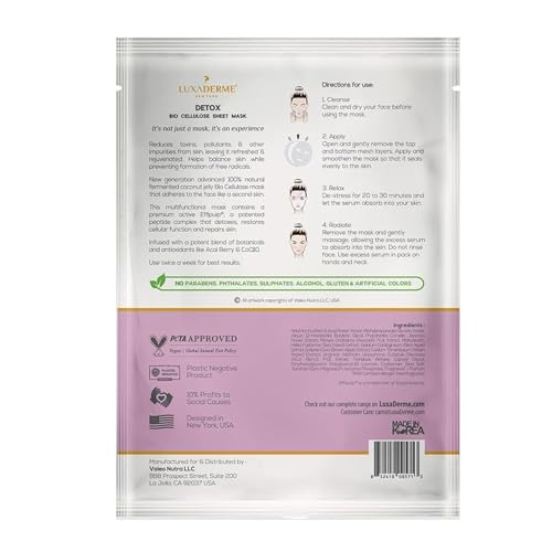 LuxaDerme Detox Bio Cellulose Sheet Mask | Detoxifies & Firms Skin | Anti-Pollution | All skin types | 100% Fermented Coconut Jelly (Pack of 1)
