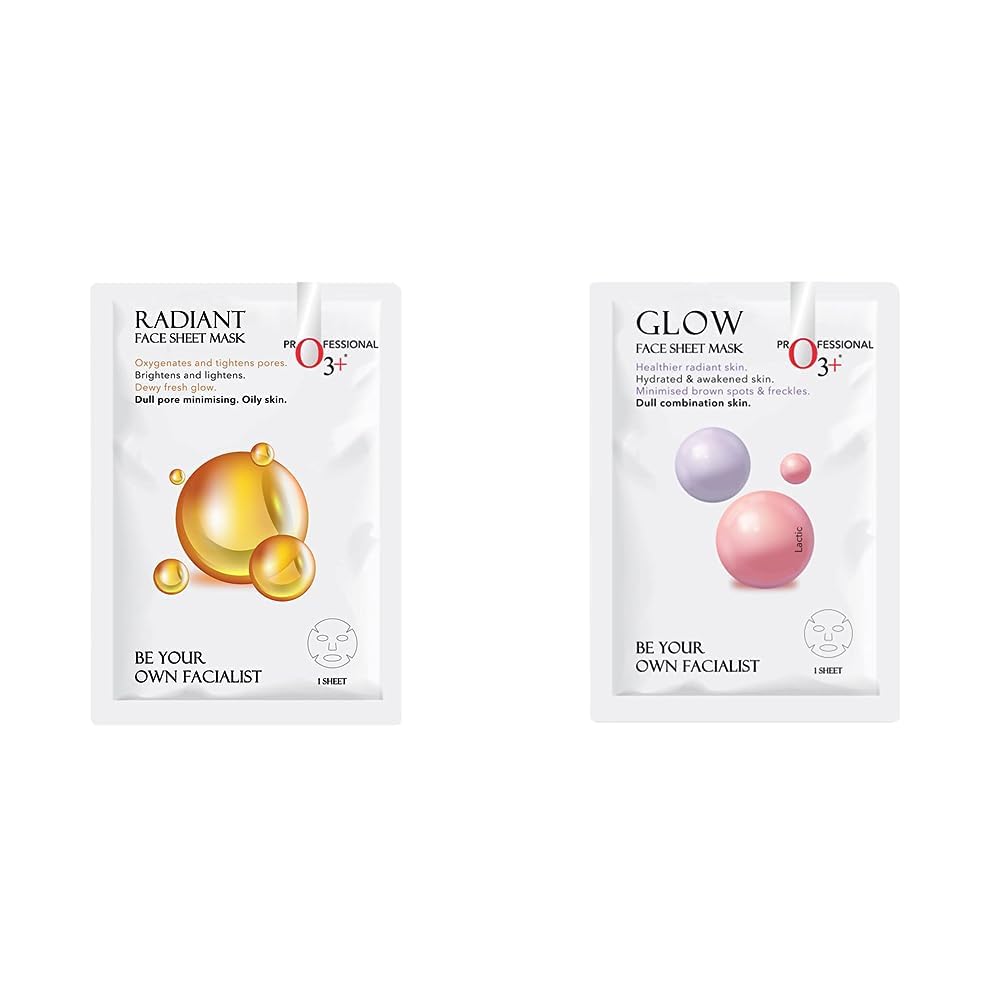 O3+ Facialist Radiant Face Sheet Mask (30g) & O3+ Facialist Glow Sheet Mask Hydrates and awakens skin(30g) Combo