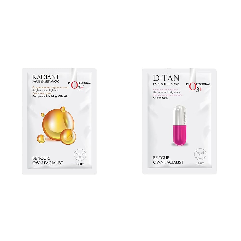 O3+ Facialist Vitamin C Cellulose sheet Mask (30g) & O3+ Facialist Dtan Face Sheet Mask (30g) Combo