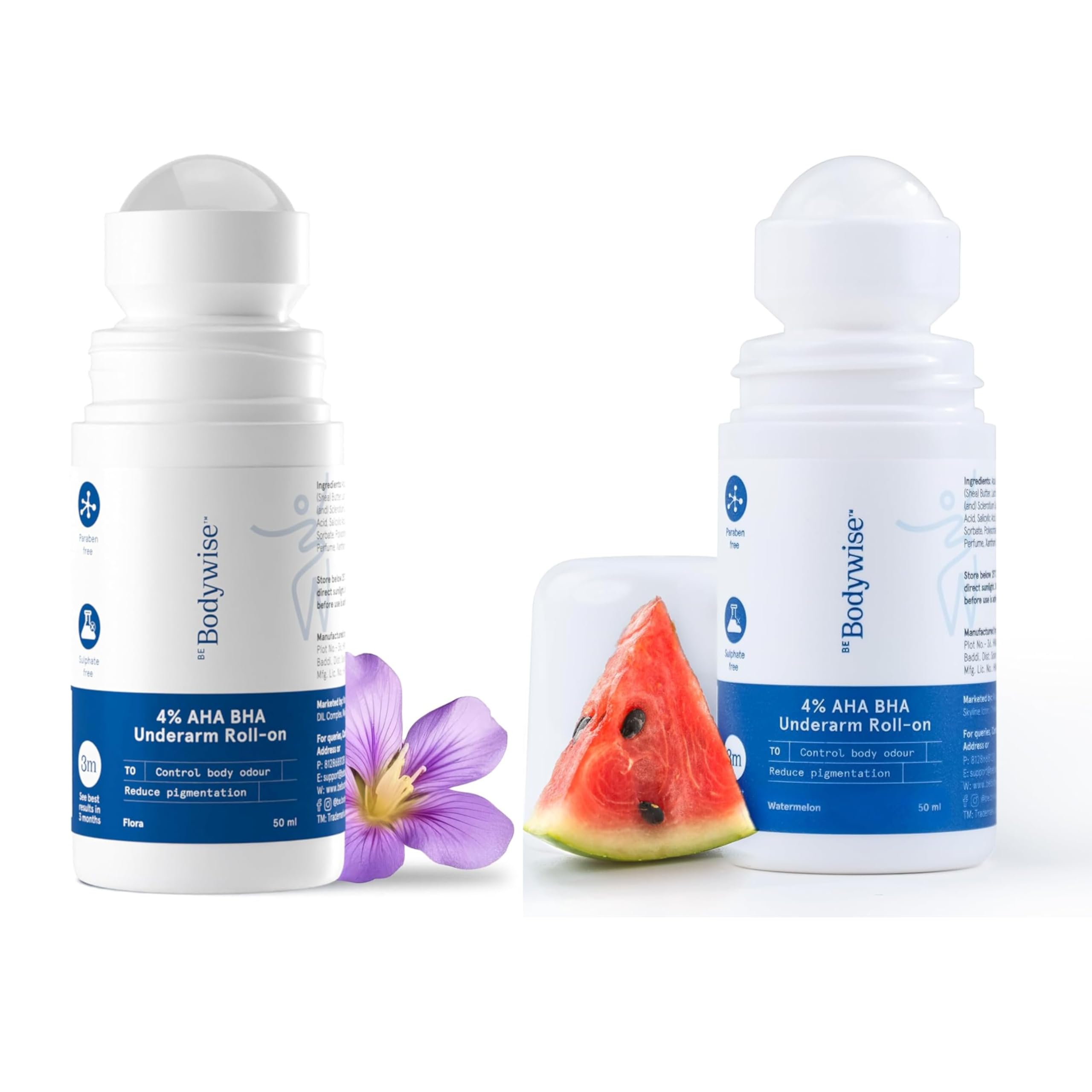 Be Bodywise 4% AHA BHA Underarm Roll On | Pack of 2 | With Flora & Watermelon Fragrance | Masks Body Odour Reduces Underarm Discoloration & Gives Long Lasting Fragrance | 100 ml