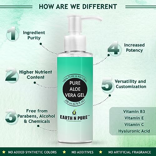 • CLEANER AND HIGH-QUALITY AFFORDABLE: At Earth N Pure our goal is to positively impact the lives of as many people as we possibly can by selling such a high quality product at an affordable price. Be sure while purchasing Earth N Pure Aloe Vera Gel as it i