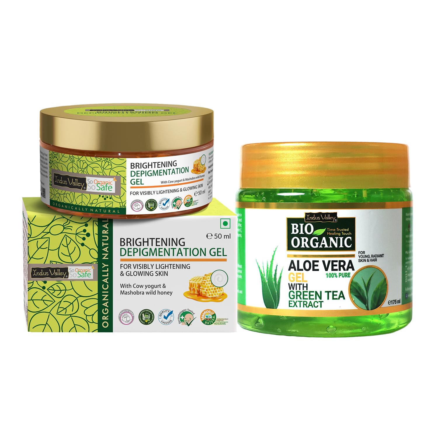 Indus Valley Bio Organic Pure Multipurpose Aloe Vera Gel 175 ml with Green Tea Extract Depigmentation Gel 50 ml Natural Cow's Milk Yogurt