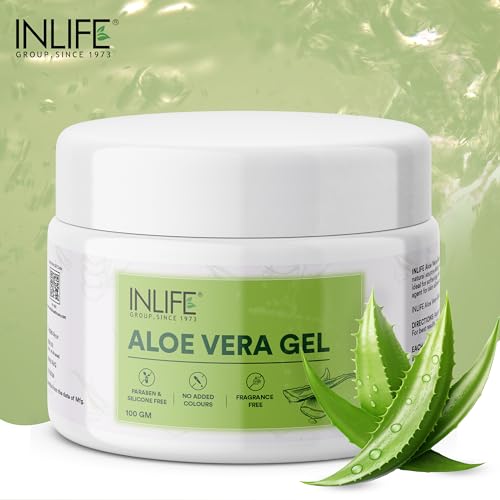 INLIFE Aloe Vera Gel for Face & Hair | Pure & Natural | Paraben Free | Silicone Free | No Added Colors | Women and Men - 100g